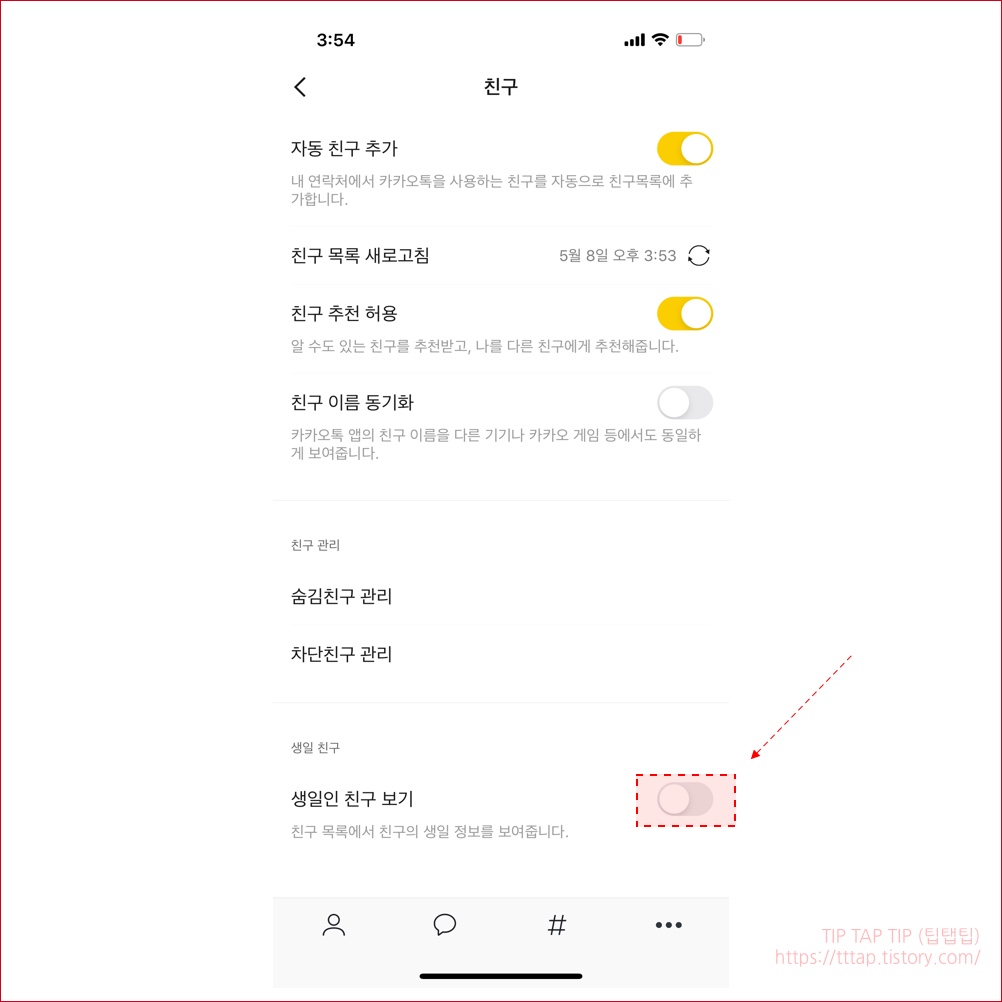 [카카오톡] 생일 친구 보기 숨기기
