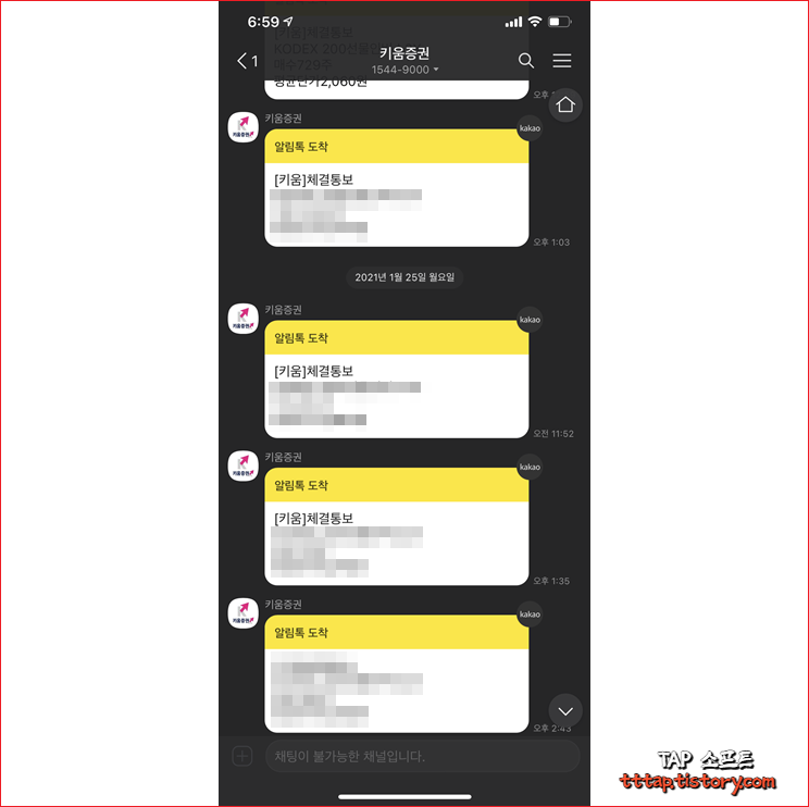 ▼ 5. 이제부터 카카오톡으로 매수 매도가 일어나면 이런 체결 통보 알림이 오기 시작합니다.