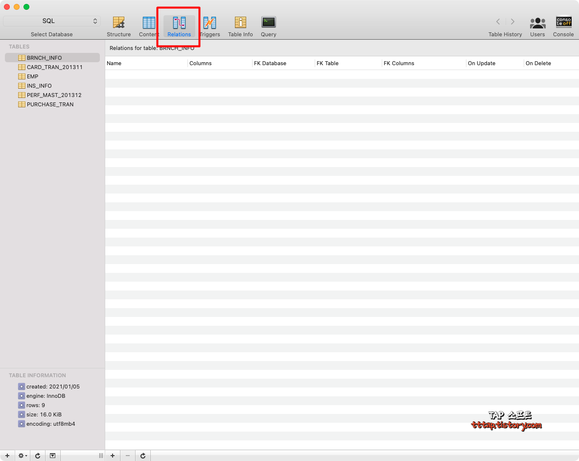 ▼ 4. 세 번째 탭은 릴레이션 탭입니다.