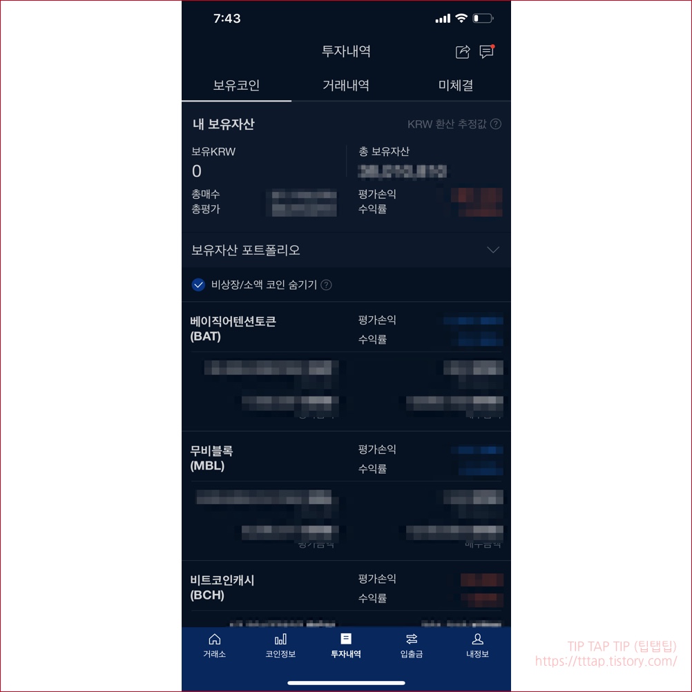 이상으로 업비트 다크 모드를 사용하는 방법을 알아봤습니다. 생각보다 간단합니다만 막상 찾으려면 찾기가 어렵습니다. 업비트 모바일 앱은 제가 정말 자주 사용하는 앱인데요. 요즘은 물려서 잘 안보고 있습니다. 무비블록 비중이 매우 커서 빨리 올라야 할 듯합니다.
