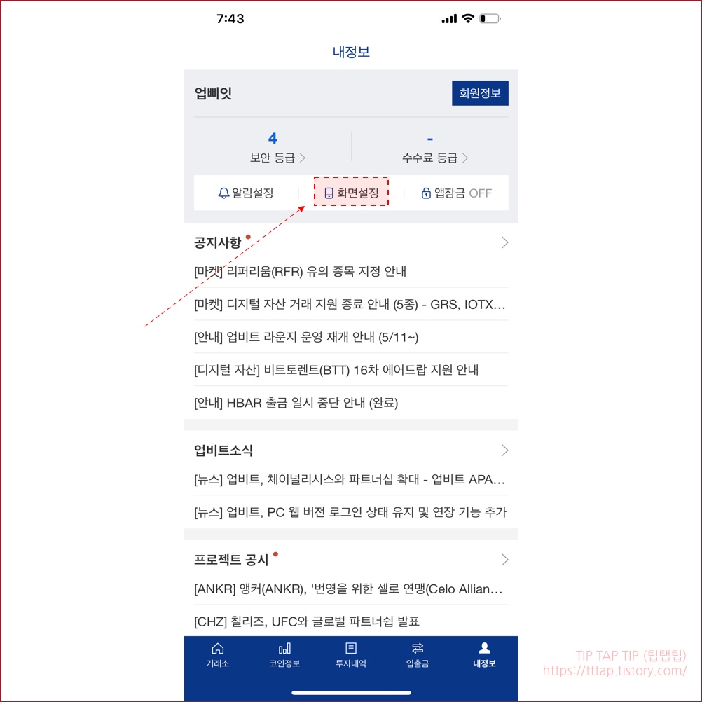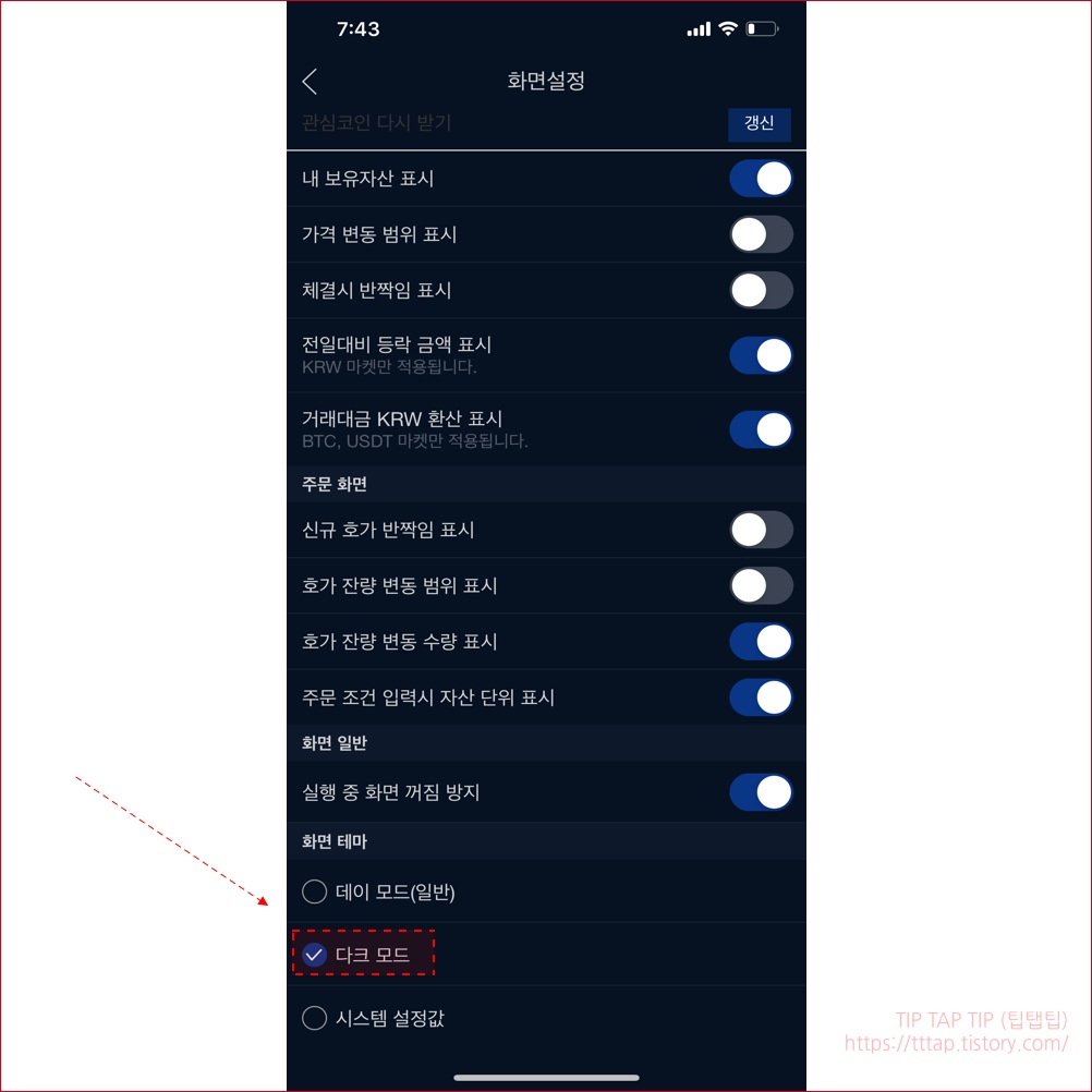 [업비트] 다크 모드 화면 설정하기