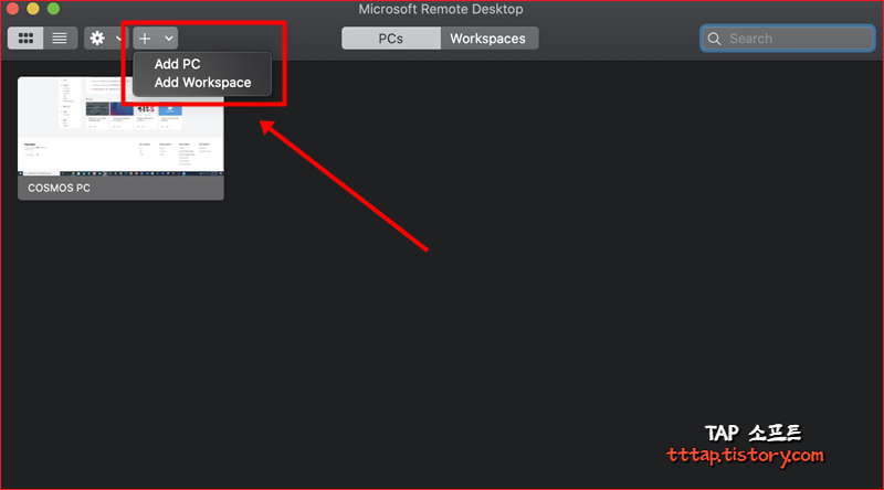 ▼ 2. + 버튼을 눌러 Add PC를 선택합니다.
