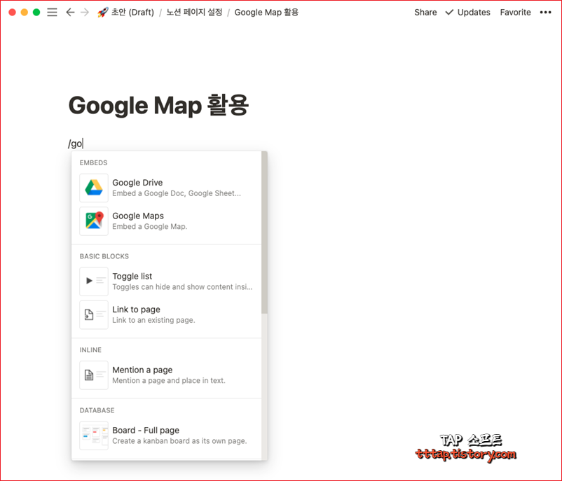 [ Notion ] 노션 구글 지도, 맵 삽입 붙여넣기