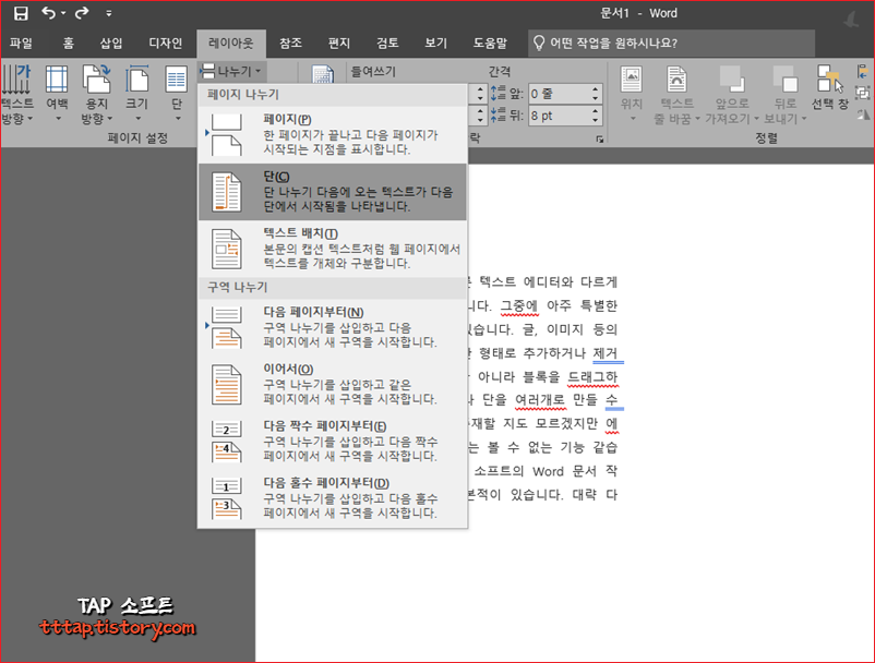 ▼ 3. 나머지 텍스트 블록들도 모두 이동시켜 총 7개의 단을 생성합니다.