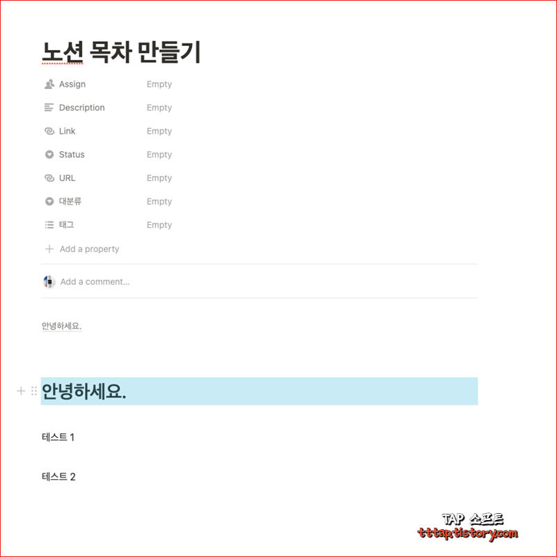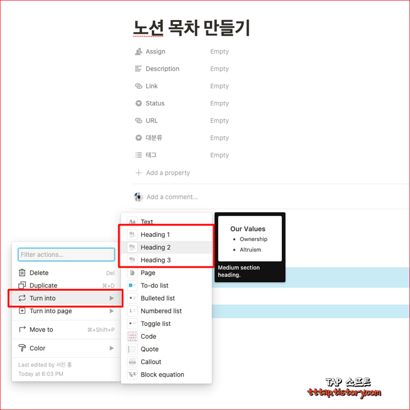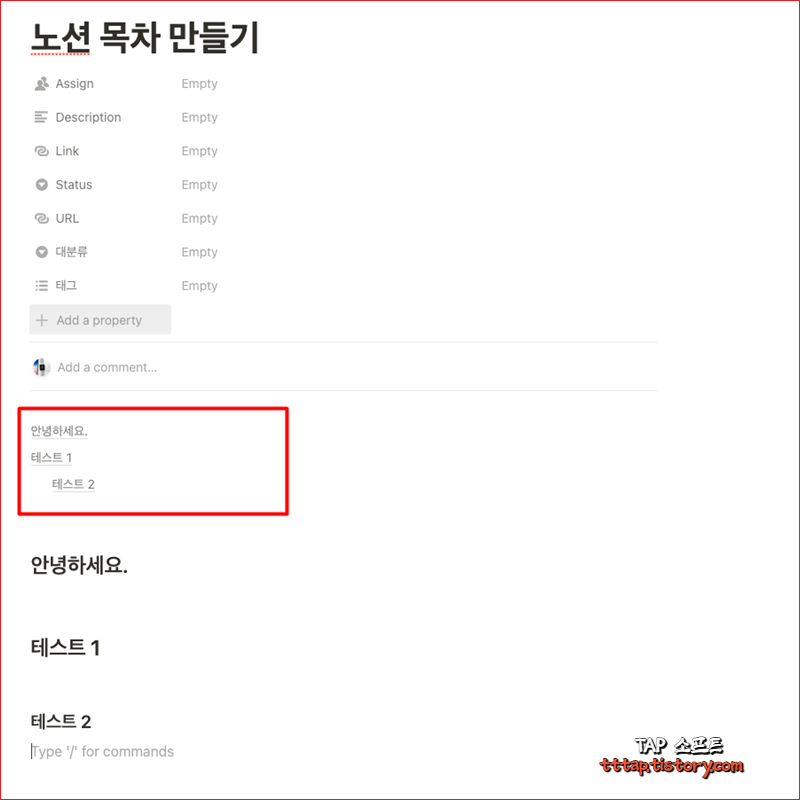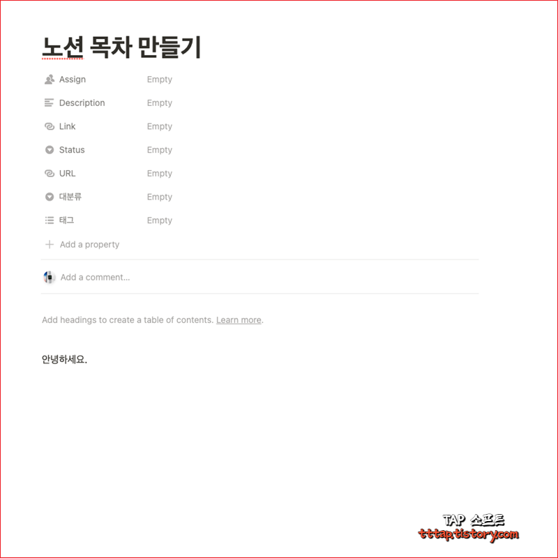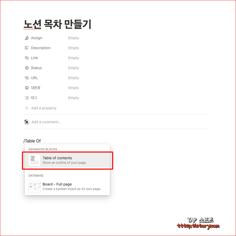 [ Notion ] 노션 문서 테이블 목차 만들기