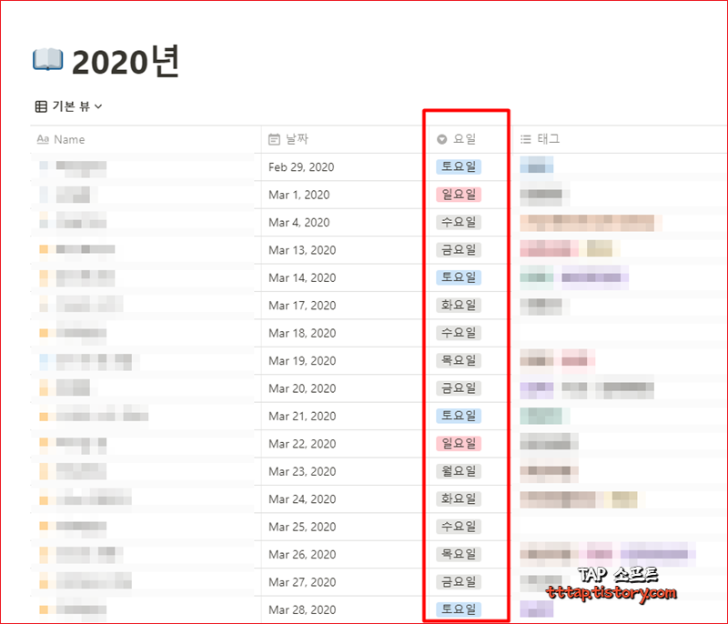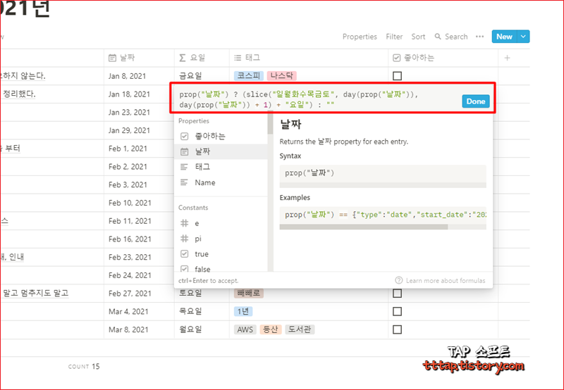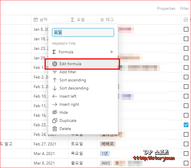 [ Notion ] 노션 Formula, 함수를 사용해서 요일 표시