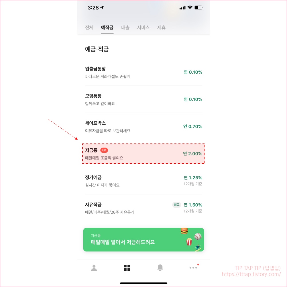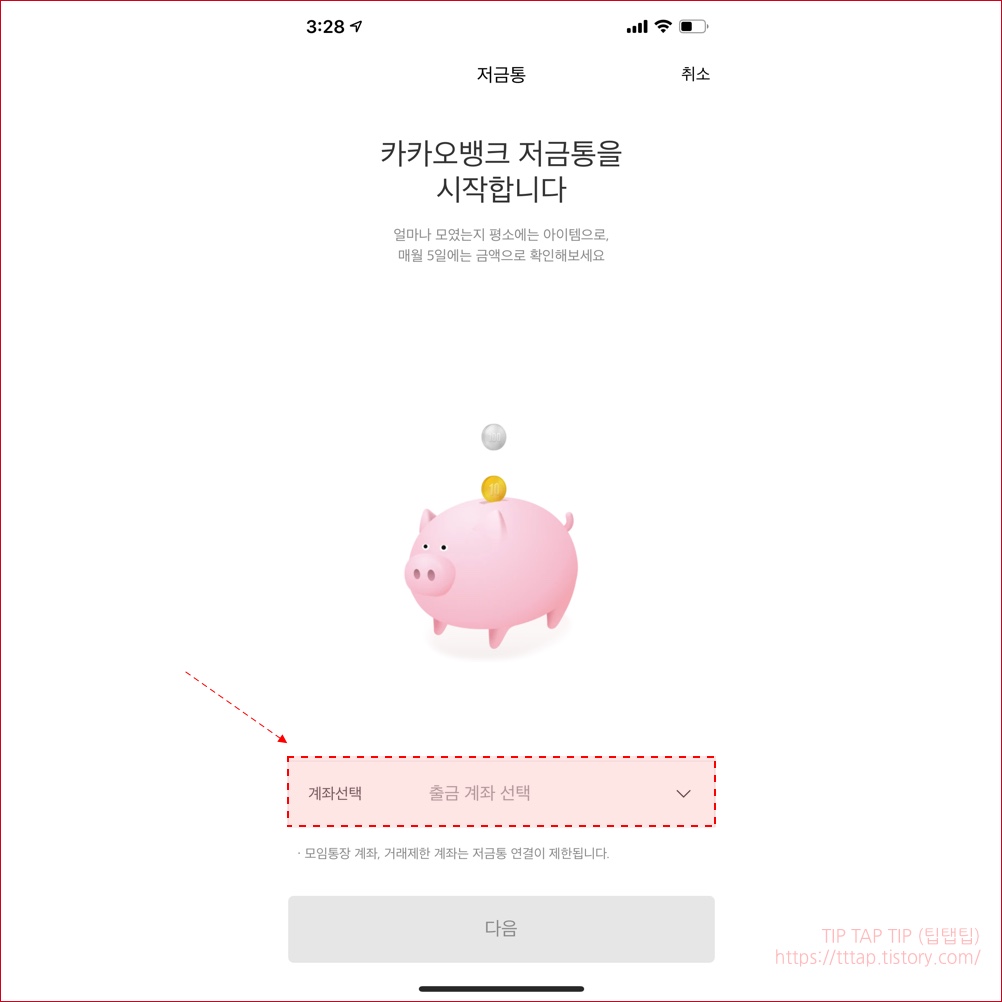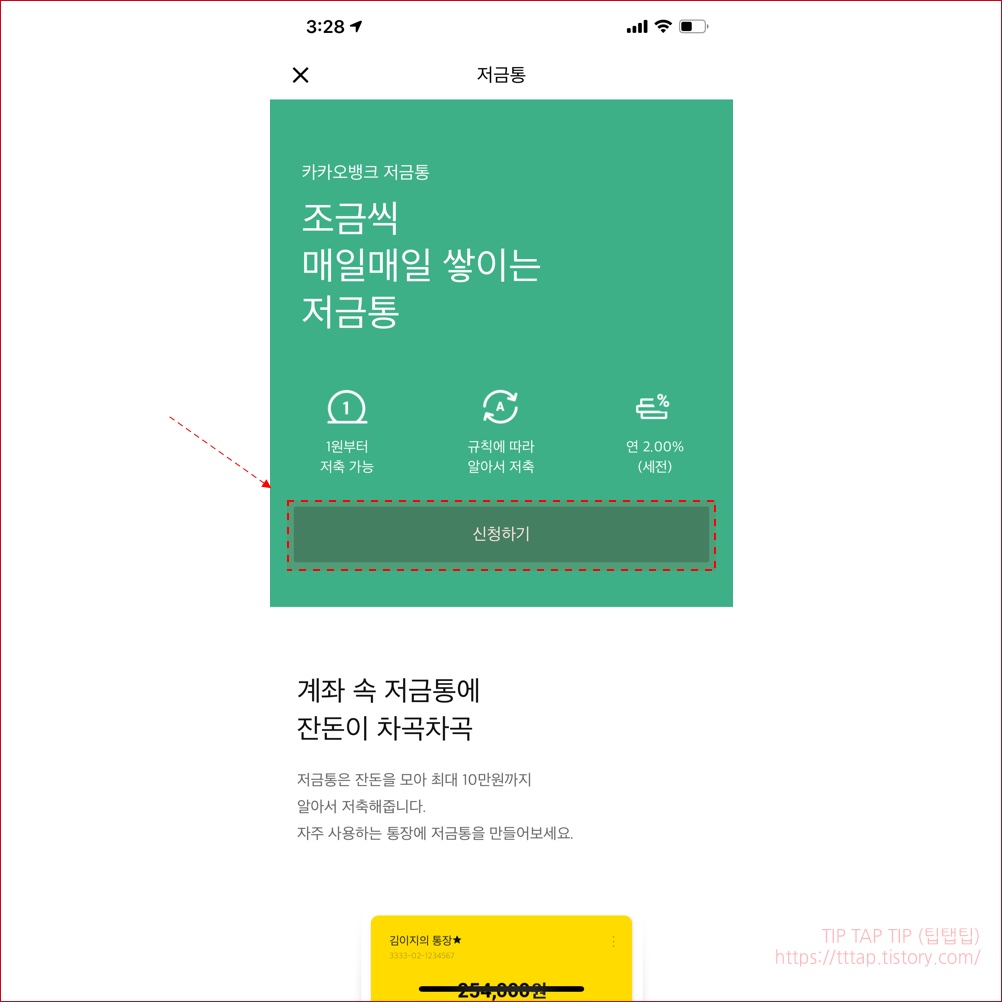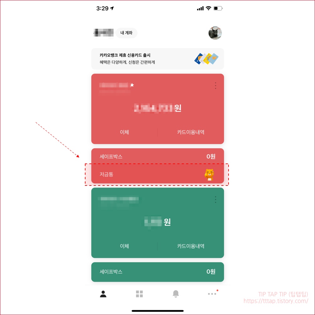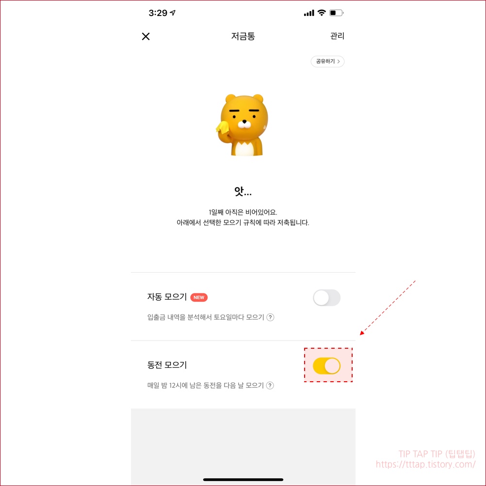 ▼ 12. 마지막으로 계좌 밑에 저금통 기능이 생긴걸 보실 수 있습니다. 오늘 밤에 진짜 저금이 되는지 한번 확인해봐야겠습니다.
