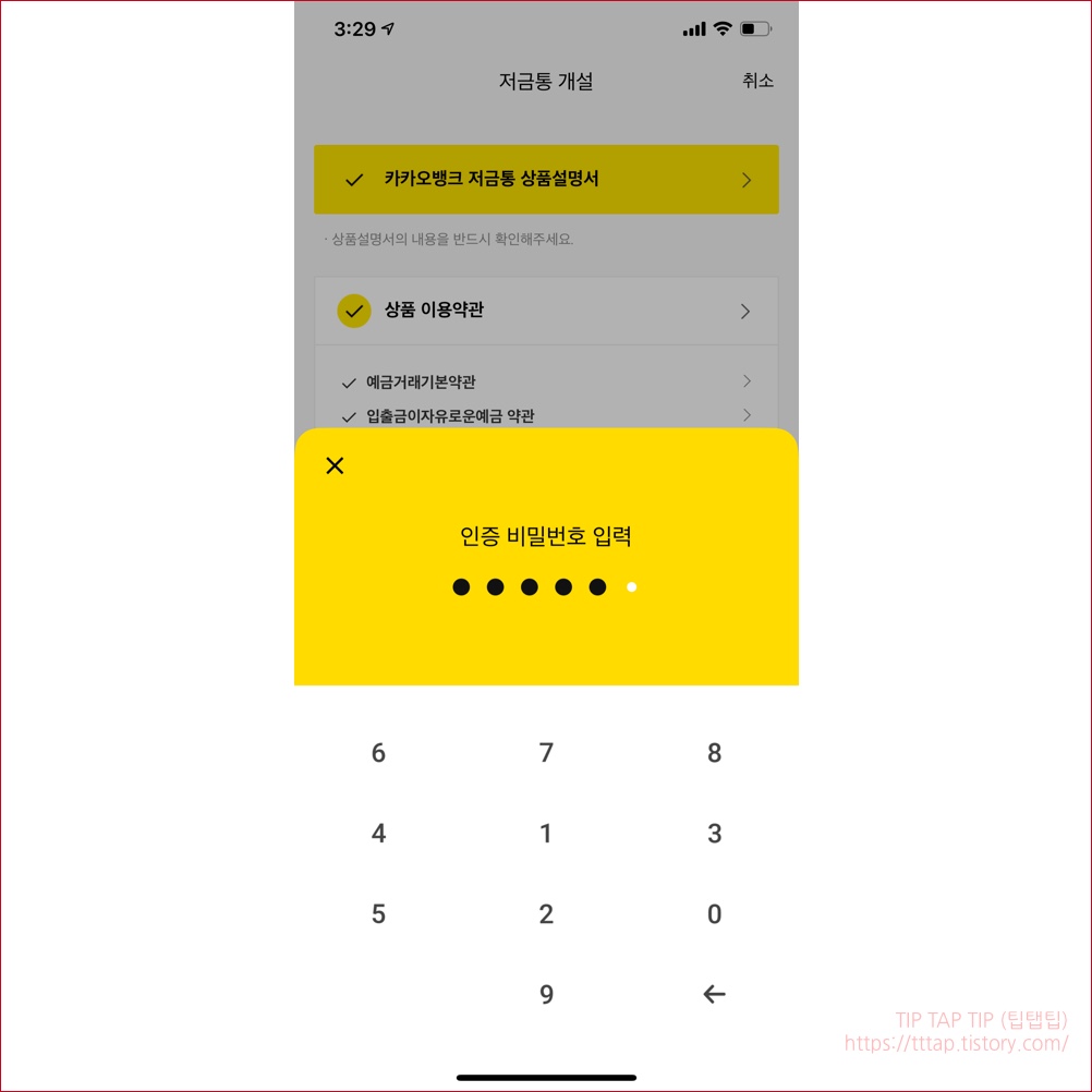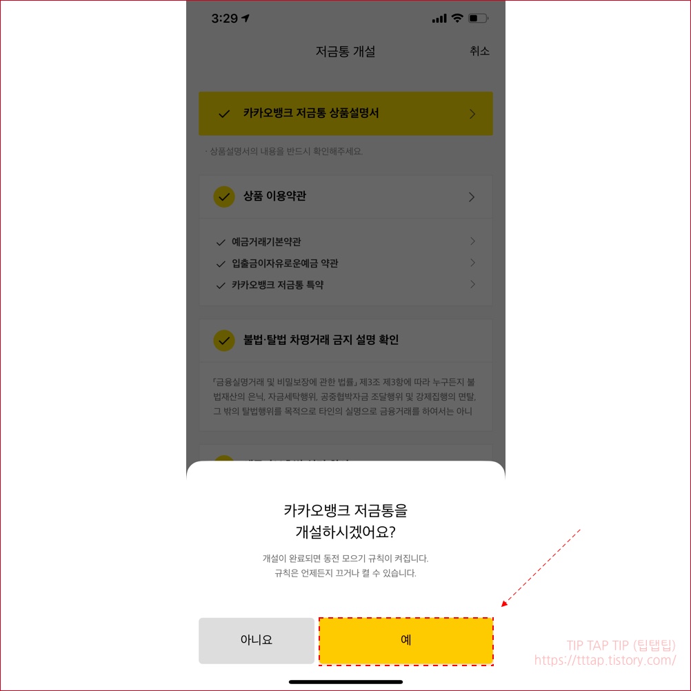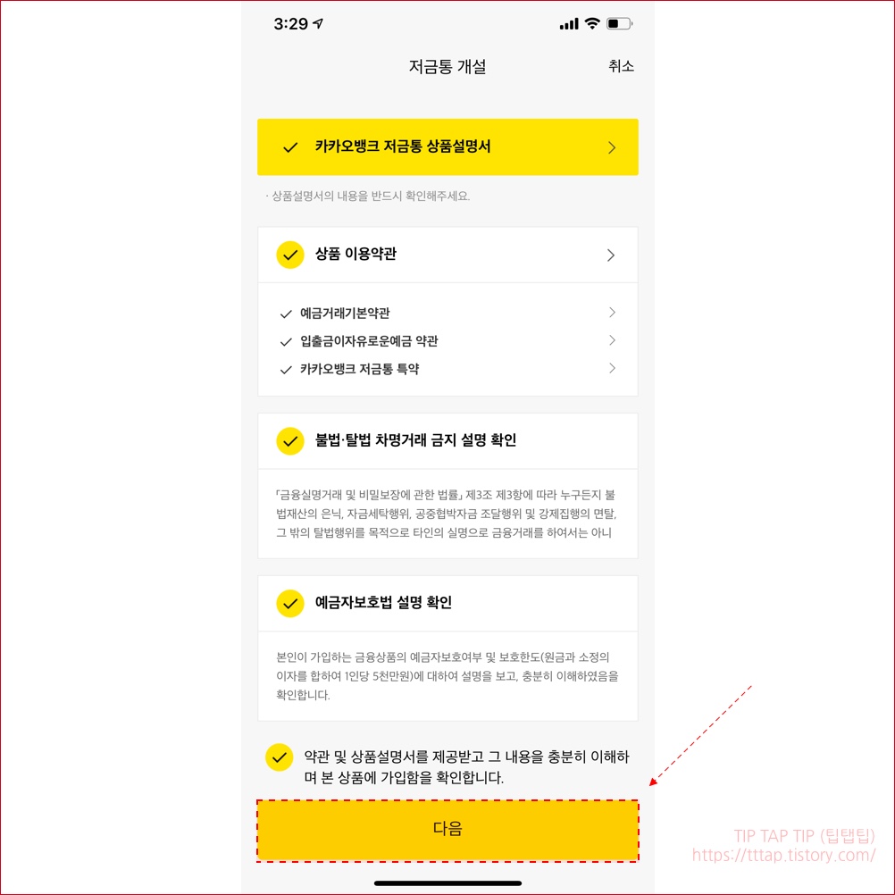 ▼ 7. 저금통 개설을 위해서 상품설명서와 이용약관에 동의합니다.