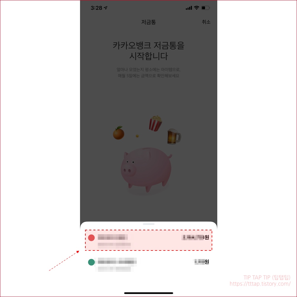 ▼ 5. 해당 저금통 기능을 사용할 계좌를 선택합니다.