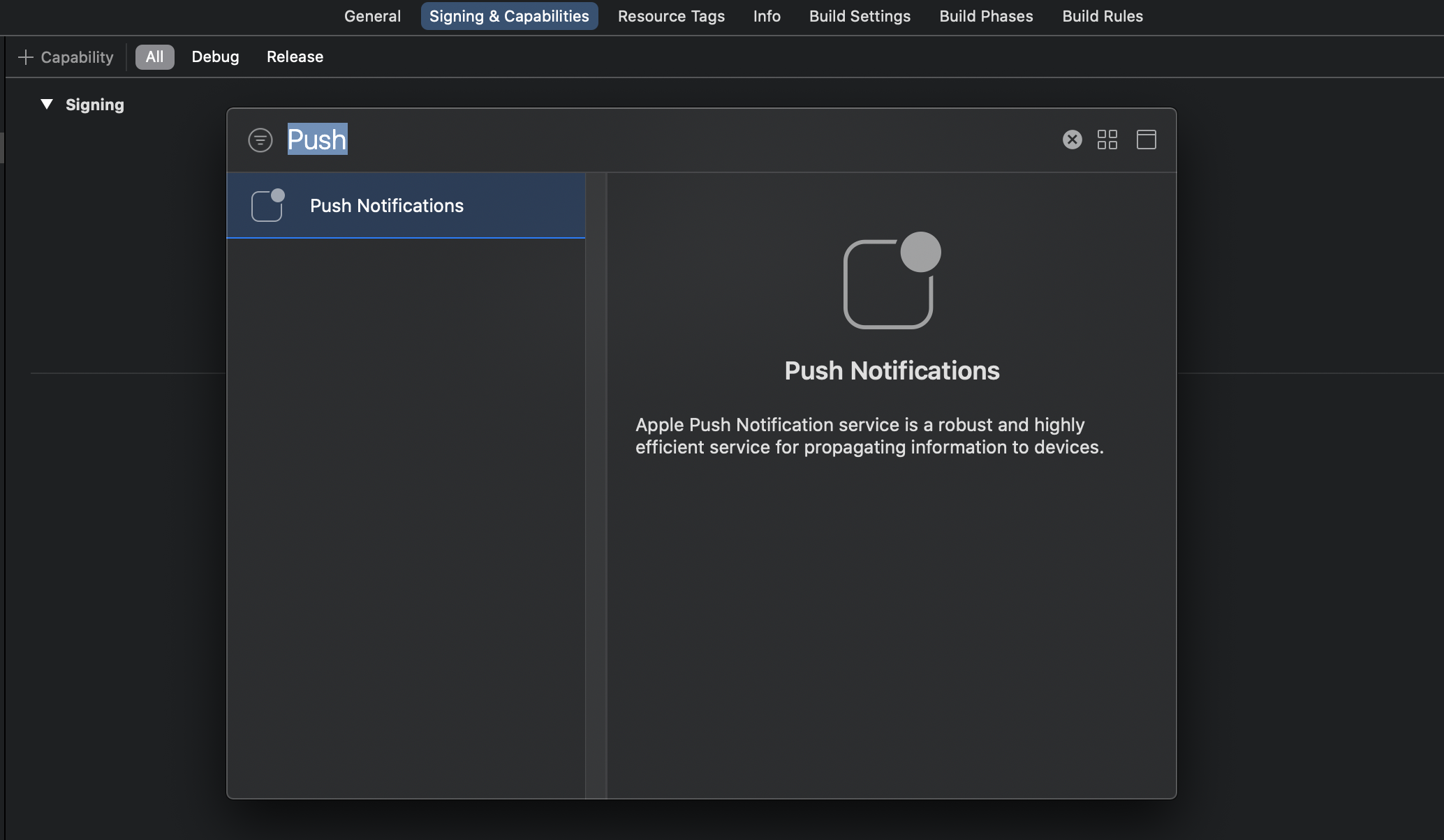 또한 로컬 푸시는 인증서를 발급받을 필요가 없지만 APNS는 인증서를 발급받아야 한다는 것입니다. 그리고 한 가지 더 다른 게 있습니다. 설정 파일에서 Capability를 추가해줘야 한다는 겁니다. 그럼 Entitlement 파일이 생성되고 앱 단에서는 APNS 노티피케이션 서비스의 모든 준비가 끝납니다.