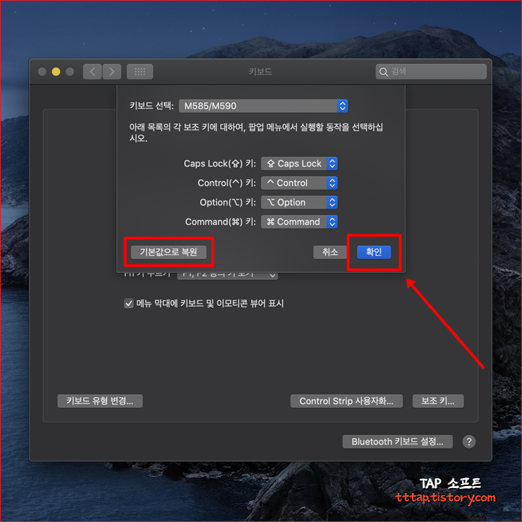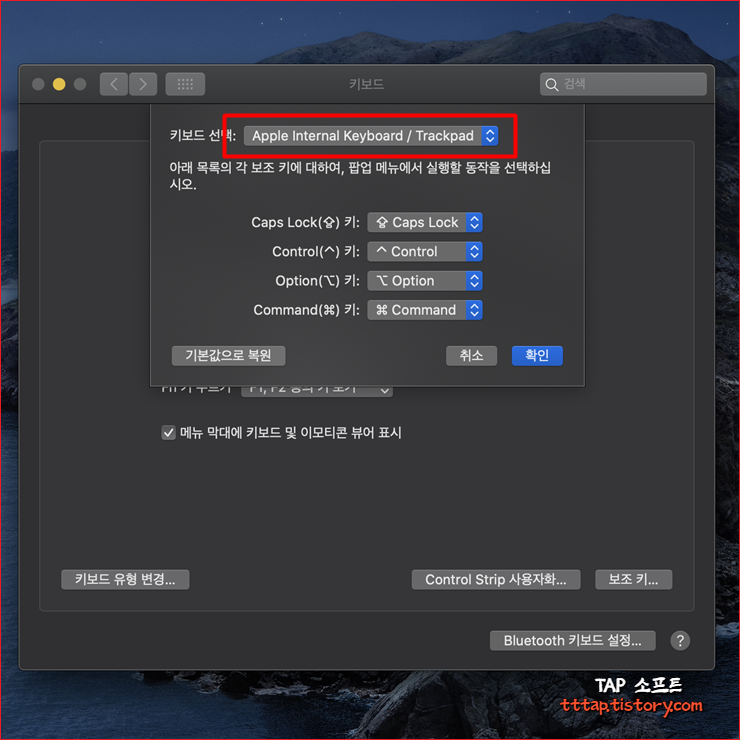 맥에서 윈도우 키보드 사용하기, Mac 보조키 변경