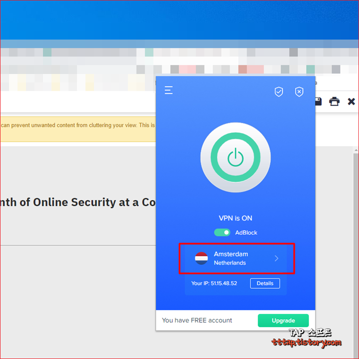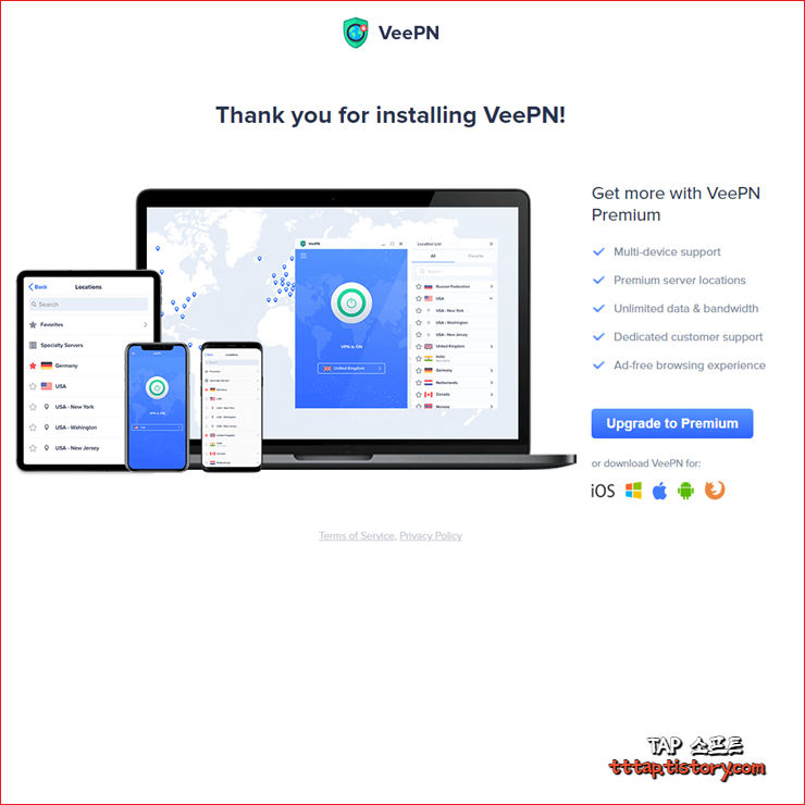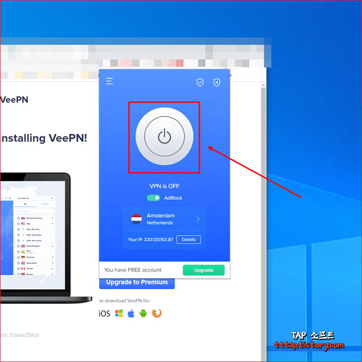 ▼ 2. VeePN 설치가 완료되었습니다. [ 업그레이드 ] 기능도 있지만 그냥 무시해도 됩니다. 업그레이드를 하면 물론 유료이며 다양한 추가 기능을 제공합니다.