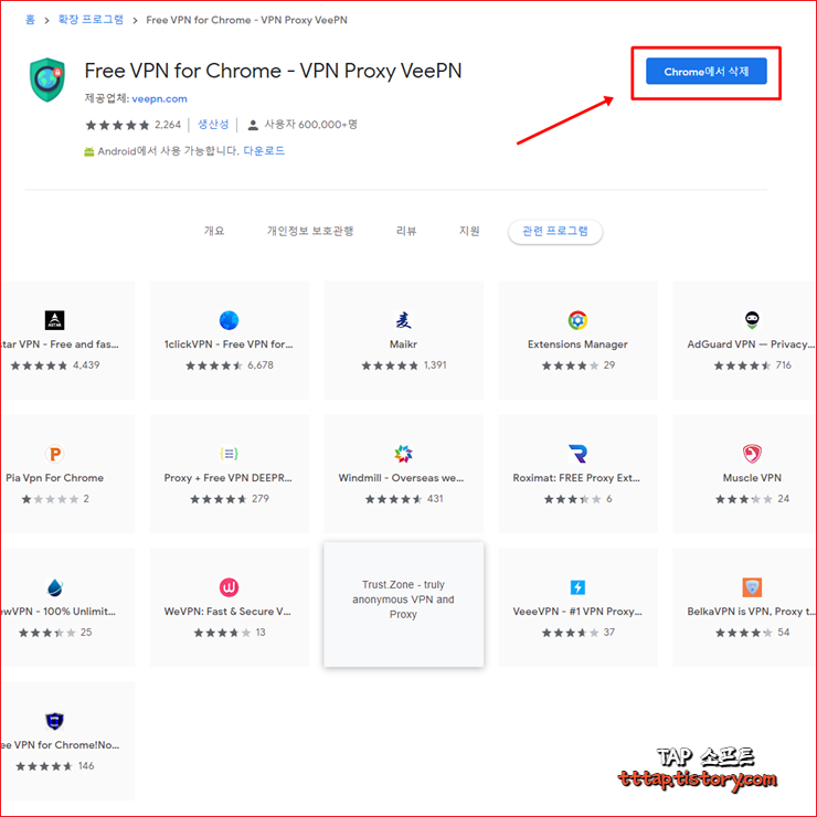 ▼ 1. 위의 주소로 이동해서 [ Chrome에 설치 ] 버튼을 눌러줍니다. 저는 이미 설치가 되어서 Chrome에서 삭제 버튼으로 변경되어 있습니다.