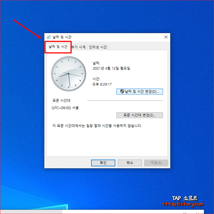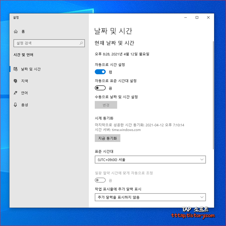 ▼ 6. 날짜 및 시간에서 추가 날짜 및 시간 첫 번째 탭 메뉴를 선택합니다.