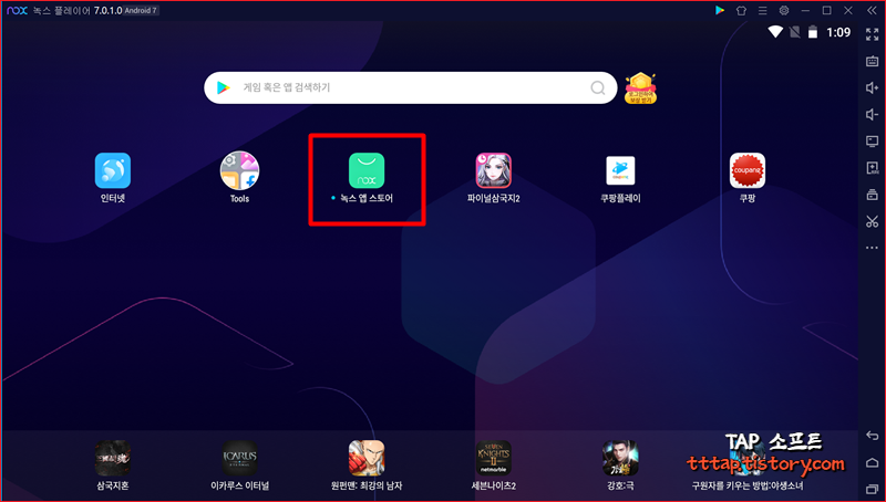 ▼ 1. 우선 녹스 앱플레이어를 다운로드하였다면 설치 후에 녹스 앱스토어로 이동합니다.