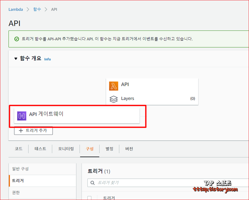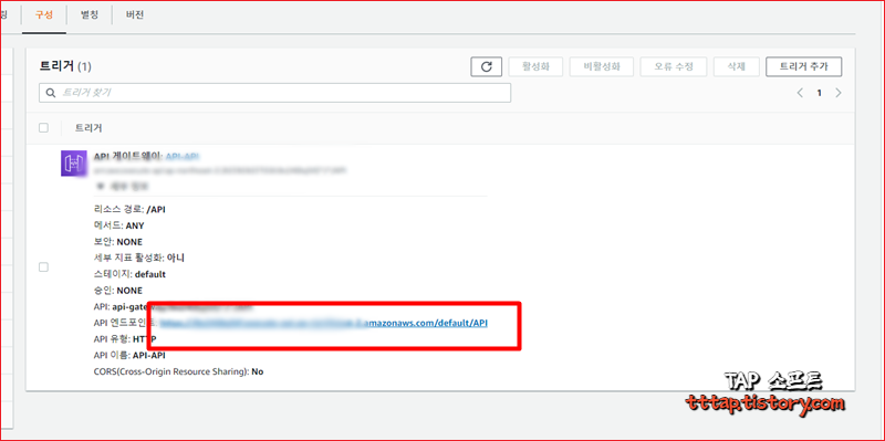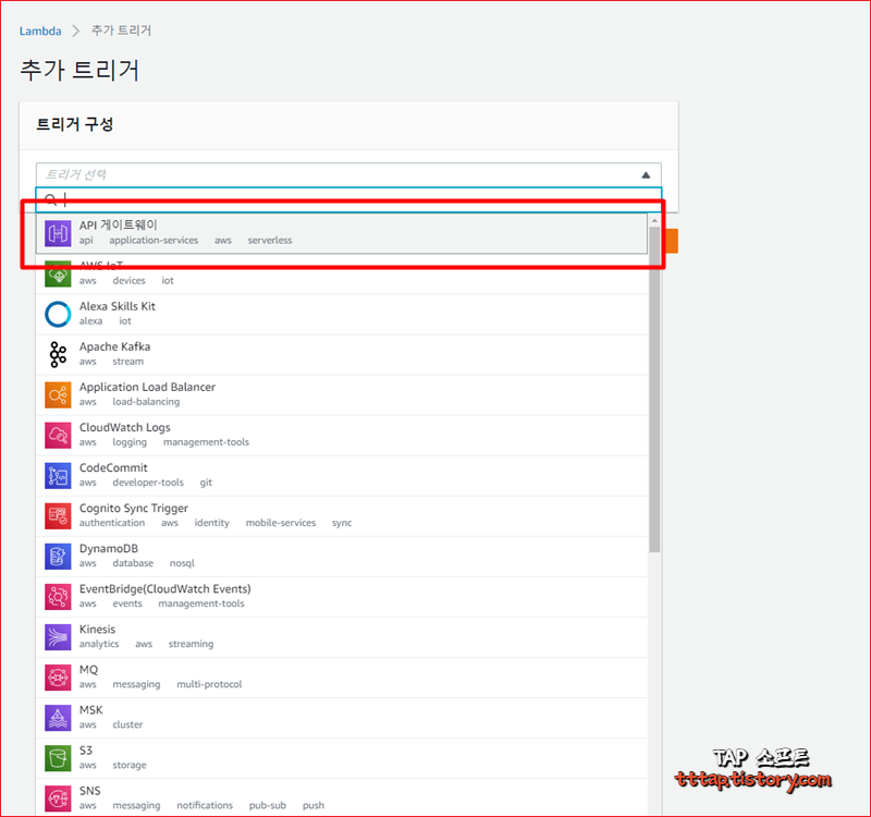 ▼ 9. 추가 트리거는 여러가지가 있지만 그중에 웹에서 호출하기 위해 API 게이트웨이를 추가해줍니다.