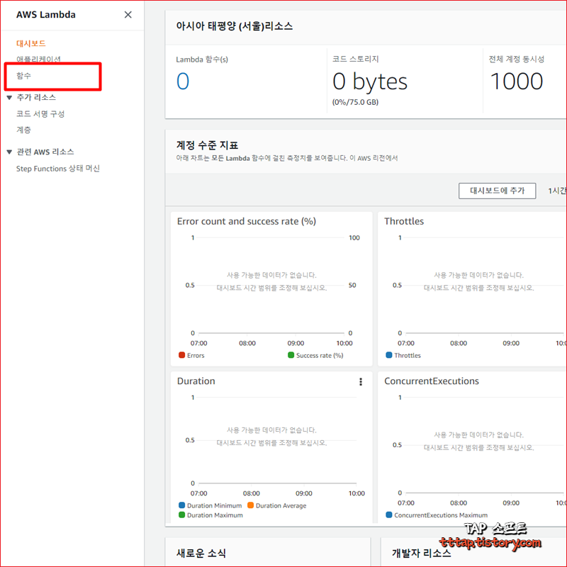 ▼ 1. AWS Lambda 서비스에서 함수 메뉴를 선택합니다.