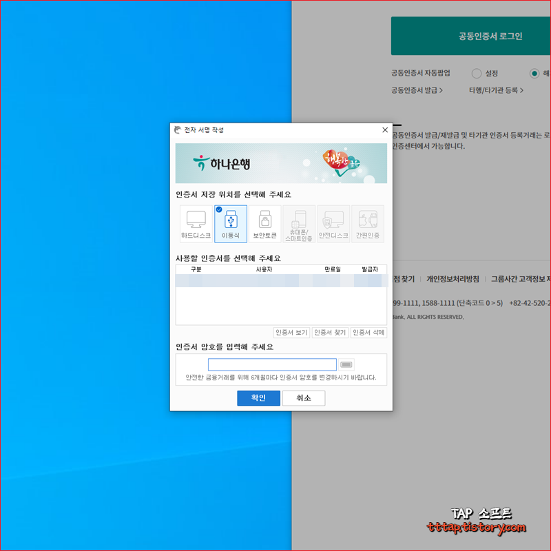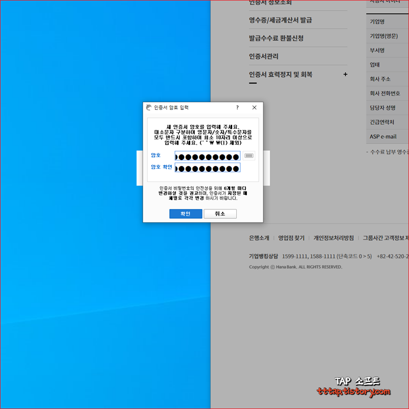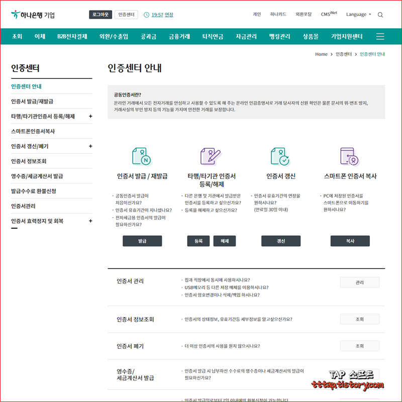 [ 하나은행 ] 기업용 전자세금계산서 공인인증서 발급 갱신