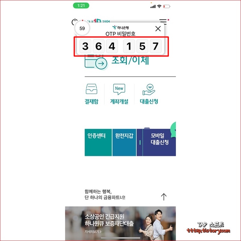 ▼ 10. 어플리케이션에 생성된 OTP 비밀번호를 입력합니다.