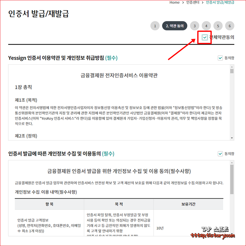 ▼ 5. 다음은 약관동의 화면이 나옵니다. 전체약관동의 버튼을 눌러 필수 동의를 모두 동의함으로 선택합니다.