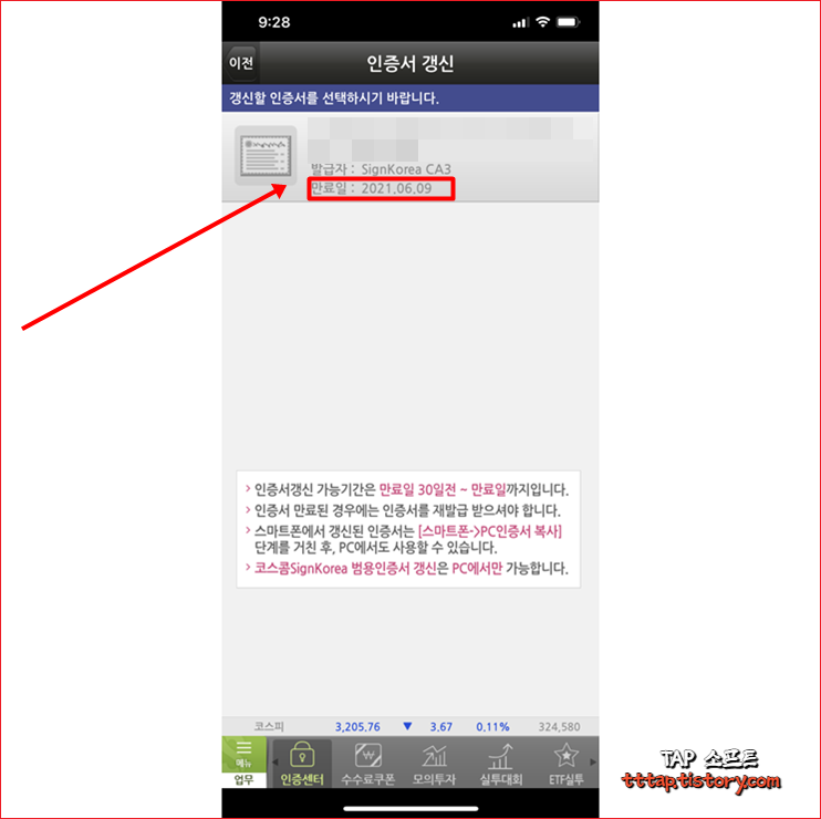 스마트폰 앱 영웅문을 실행하니 분명 얼마전에 스마트폰으로 인증서를 복사했는데 갑자기 인증서를 갱신하라는 메시지가 떠서 빠르게 갱신해봤습니다. 알고보니 제가 작년 6월달에 인증서를 만들고 갱신을 하지 않아서 날라온 메시지 였습니다. 1달이 남으면 영웅문에 접속할 때마다 인증서를 갱신하라는 팝업이 노출됩니다. 그렇다고 홈페이지에서 영웅문 S의 인증서를 갱신하고 복사 내보내기를 할 필요는 없습니다. 인증서를 핸드폰에서도 충분히 갱신이 가능하니까요. 그것도 그런데 요즘 주가가 곤두박질 치고 있습니다. 고점을 찍고 하강하는 건지 조정인지 잘모르겠네요. 주식은 진짜 아무도 모르는 거니까요. 비트코인이 그나마 선방하고 있는 것 같습니다. 코인 시장도 이제 무시못할 수준이 되었죠.