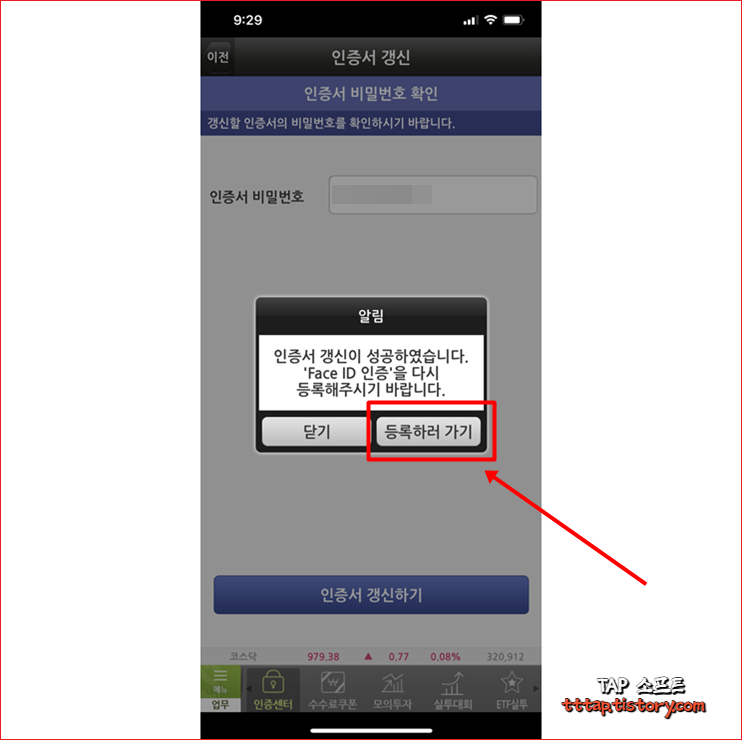 ▼ 1. 여기서 창을 그냥 닫아도 상관없지만 페이스 아이디나 지문인증과 같은 다른 생체인식을 하려면 등록하러 가기 버튼을 눌러줍니다.