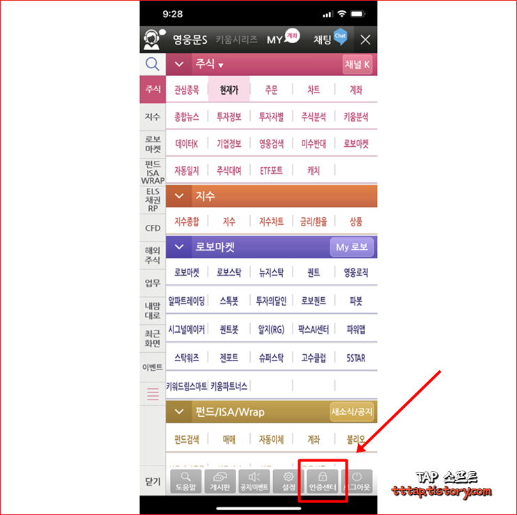 ▼ 1. 하단 탭 메뉴중에 인증센터를 선택합니다.