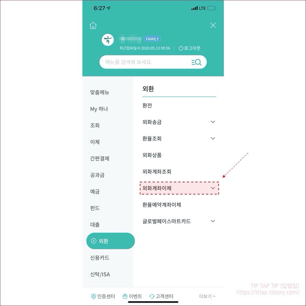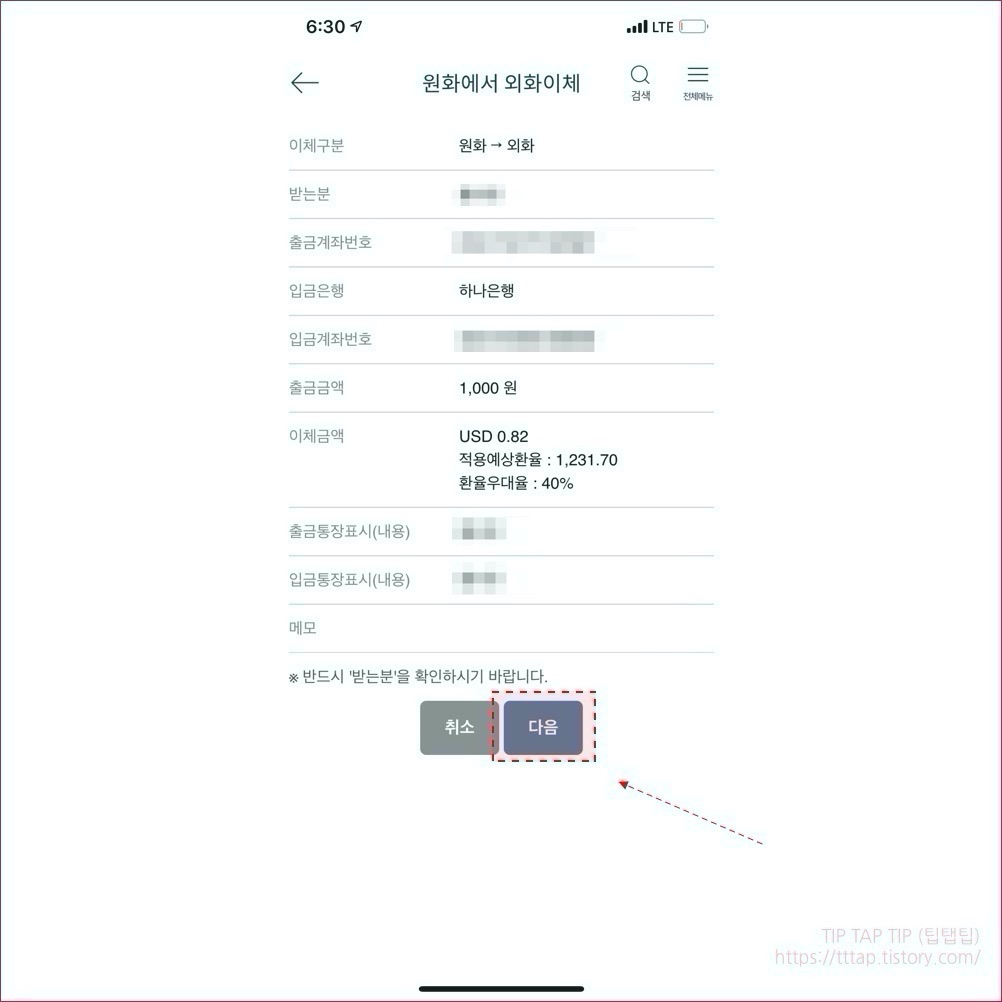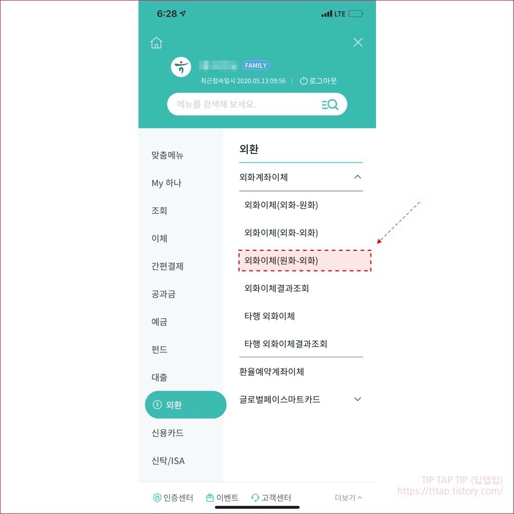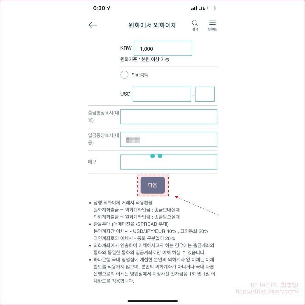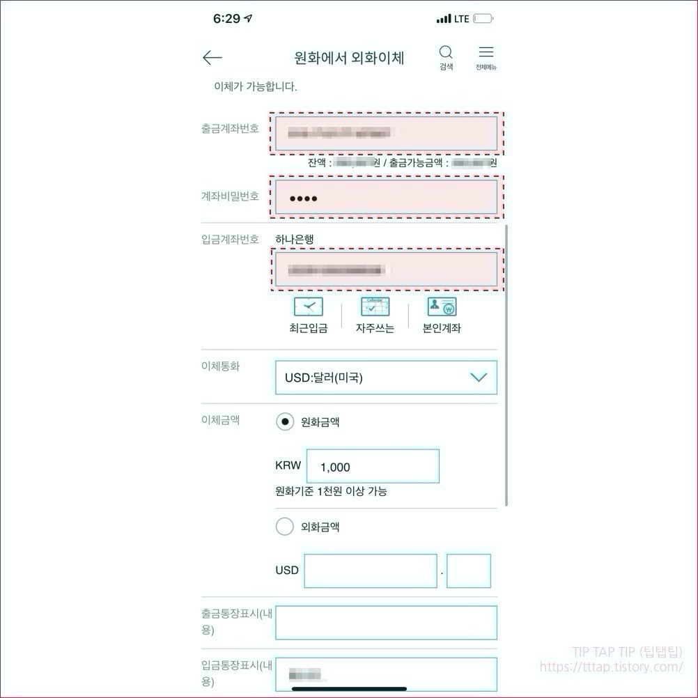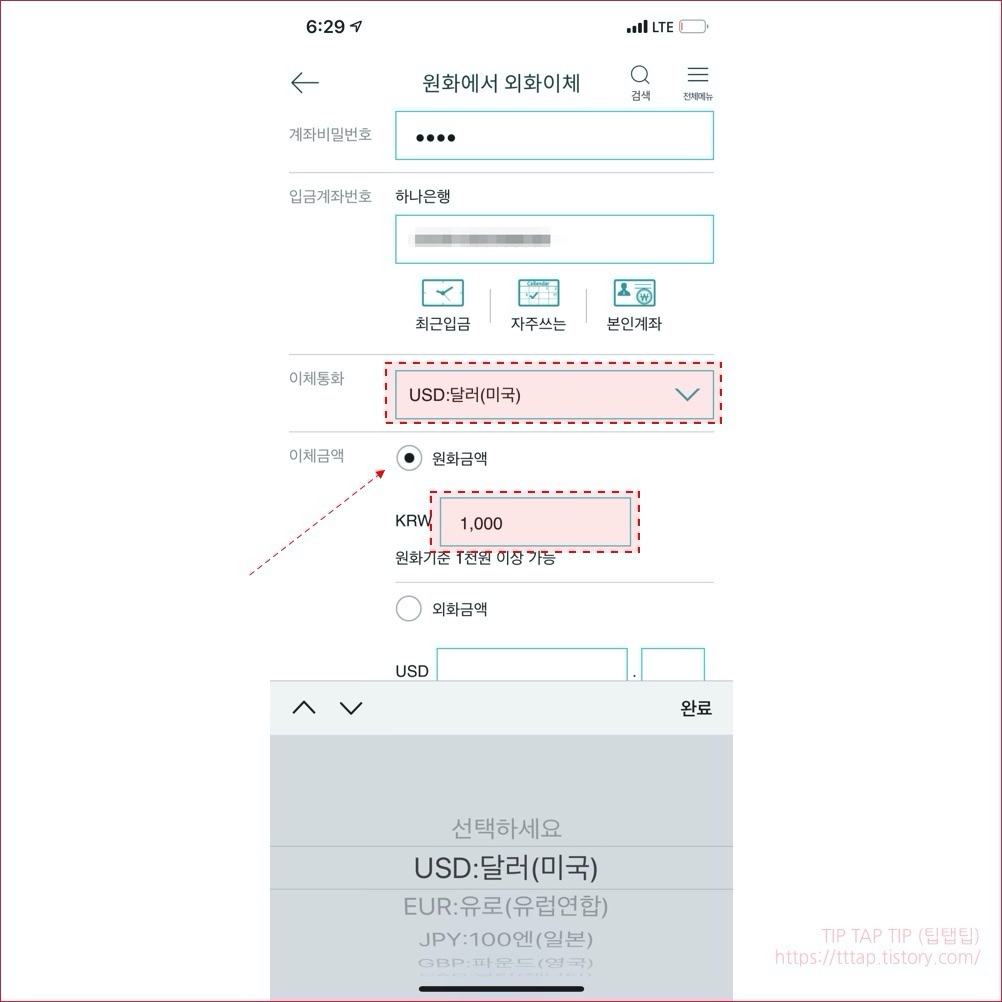 [하나은행] 원화통장에서 외화통장으로 이체하기