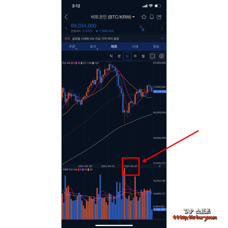 코인 거래를 하면서 중요한 것은 정확하게 바닥에서 줍는 것입니다. 코인 거래도 보통 주식처럼 추세를 따라갑니다 하지만 그중에서도 중요한 것이 바닥을 아는 것입니다. 주식의 경우는 바닥이 없는 경우도 있죠. 바닥인 줄 알았는데 지하실이 있더라 뭐 이런 것처럼 주식은 조금 잔인할 정도로 바닥을 뚫는 경우가 있습니다. 그에 반해 코인은 반등이 나오면 확실이 어느 기점까지는 올라가죠. 물론 전부 운이라고 할 수도 있지만 분명한 것은 주식과 코인은 조금 다르다는 것입니다. 이건 다년간 경험으로 알 수 있는 동물적 본능이죠. 아무튼 이 차트를 보기 위해서 정해진 시간이 협정 세계시로 나오는 경우 우리나라와 시간이 안 맞아서 혼동이 올 수 있습니다. 그럼 오늘은 업비트 앱에서 시간 설정이 잘못된 경우 정상적으로 한국 시간으로 나오게 하는 방법을 알아볼게요.