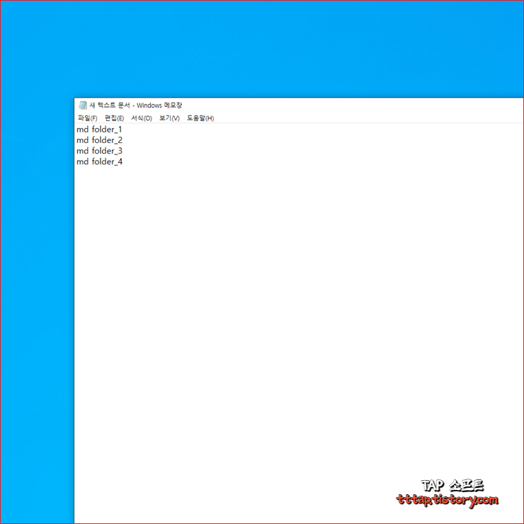 ▼ 2. 다음으로 텍스트 파일에 md 라는 구문과 한 칸 뛰고 폴더 이름들을 써줍니다.