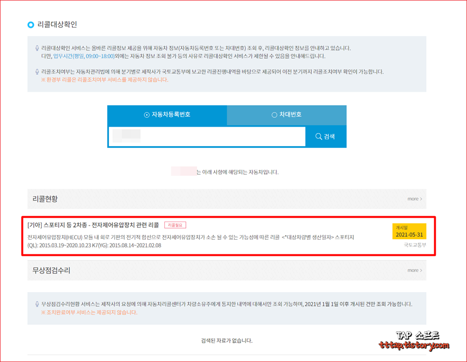 내차 자동차 리콜 등록번호 확인 및 검색