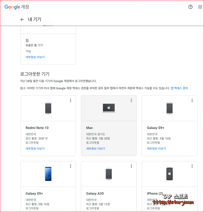 ▼ 7. 조금 스크롤해 내리다보면 로그아웃한 기기도 볼 수 있습니다. 정말 많군요.