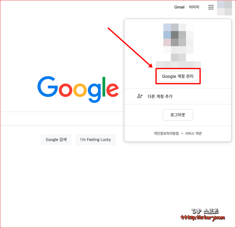 ▼ 2. Google 계정 관리 버튼을 눌러줍니다.