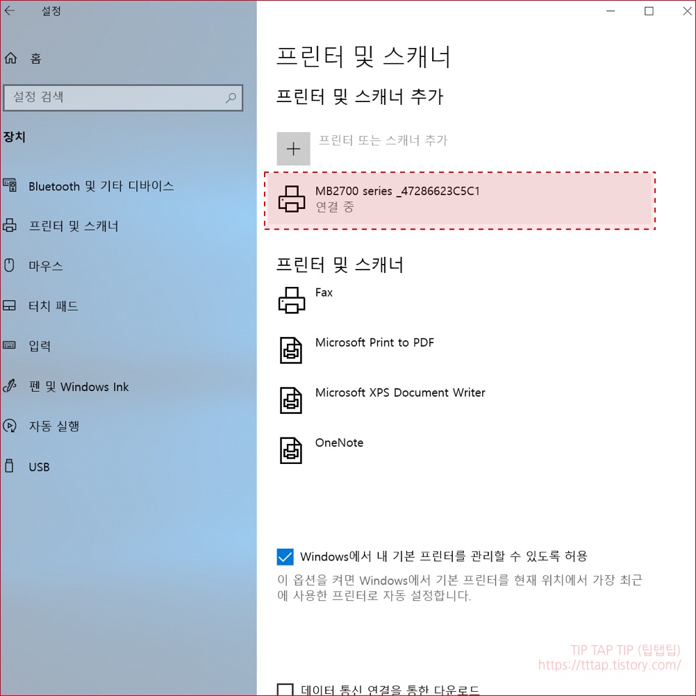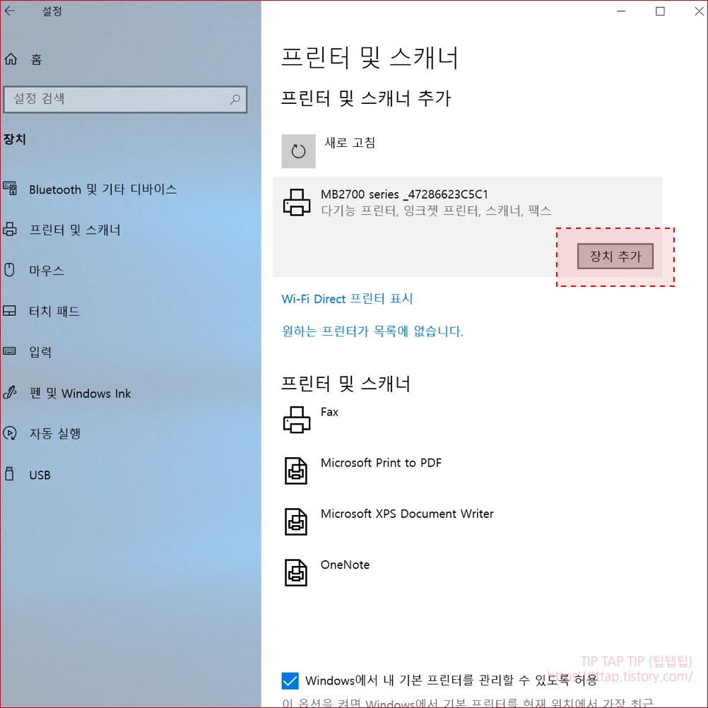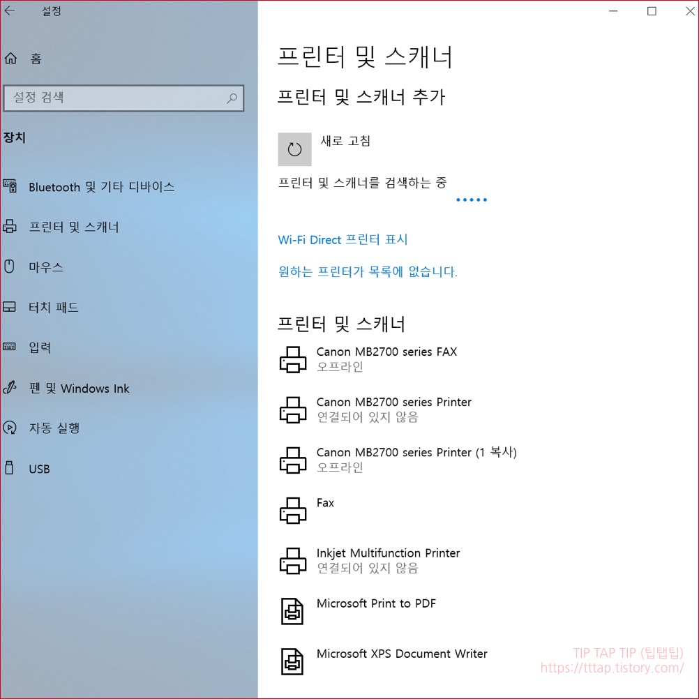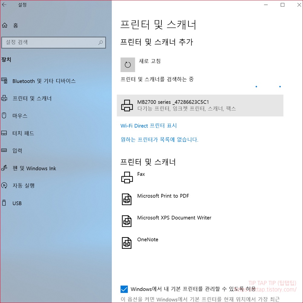 [윈도우 10] 유/무선 네트워크 (프린터, 스캐너) 연결하기