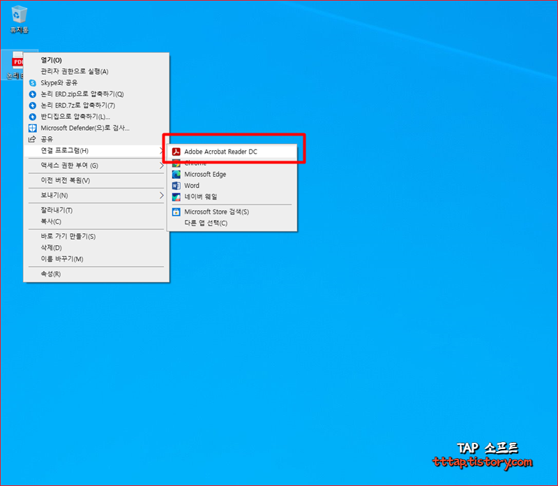 ▼ 2. 기본 인쇄 프로그램에는 상세한 레이아웃 설정이 없습니다. 물론 페이지 여러장을 한 장에 담는 방법은 있습니다. 때문에 다음과 같이 아크로벳 리더(Adobe Acrobat Reader)로 파일을 열어줍니다.