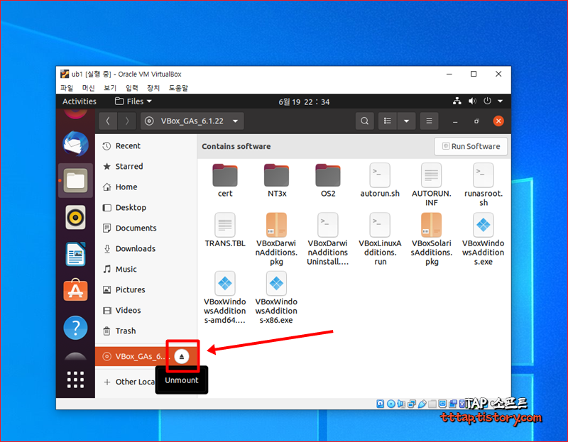 ▼ 6. 인스톨이 끝나면 노틸러스(탐색기)에서 가상 CD를 Unmount 해줍니다.