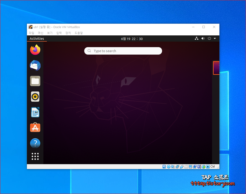 ▼ 10. 이제 다시 실행해보면 우분투 리눅스의 화면 사이즈를 마우스를 이용해 동적으로 변경할 수 있습니다.