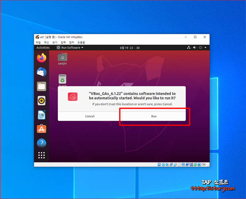 ▼ 3. 가상 CD가 삽입되면 다음과 같은 팝업이 뜹니다. Run 버튼을 눌러 실행해줍니다.