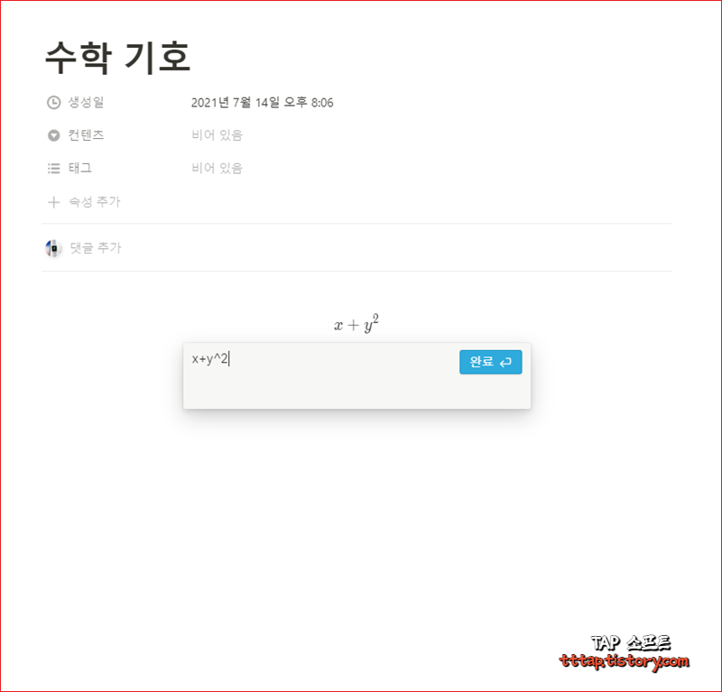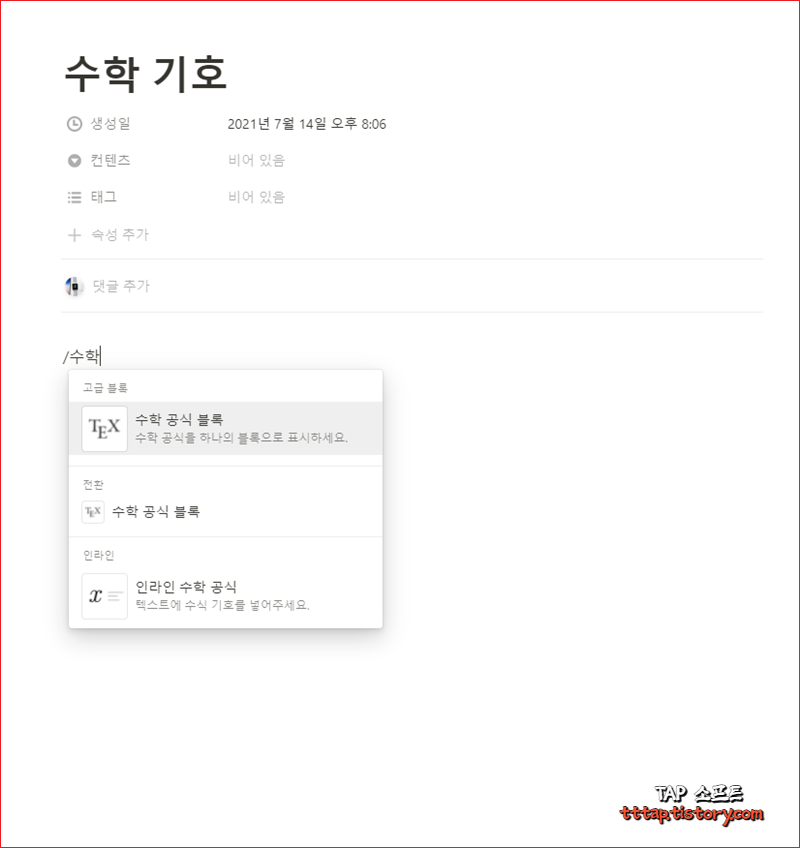 [Notion] 노션 수학 기호 공식 블럭 사용법