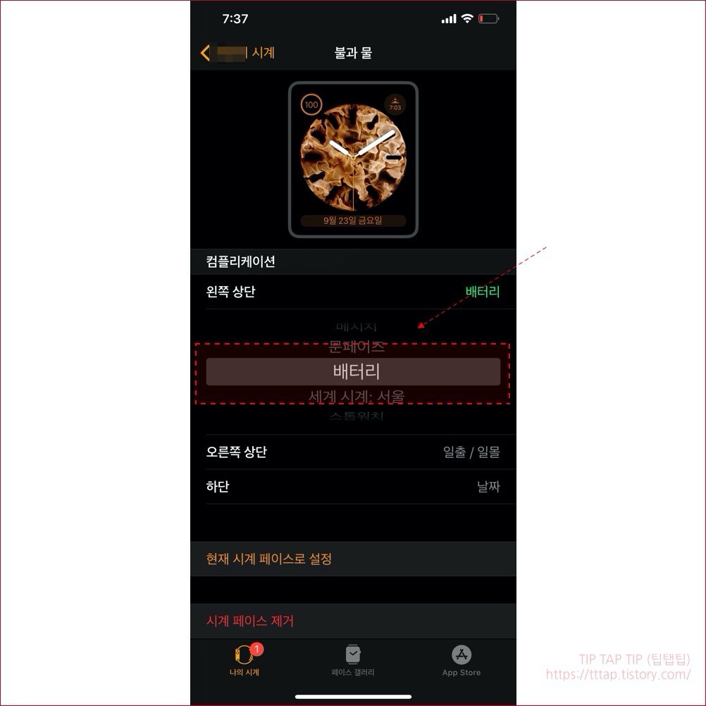 ▼ 6. 저는 배터리라는 컴플리케이션을 추가해서 설정 했습니다. 복잡한 화면이 싫다면 생략해도 좋습니다.