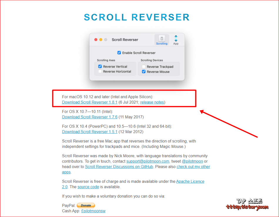 Download Scroll Reverser 1.8.1 (6 Jul 2021; release notes)