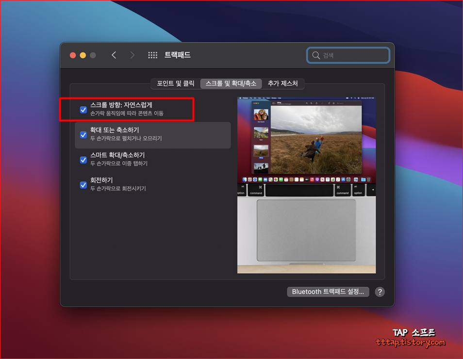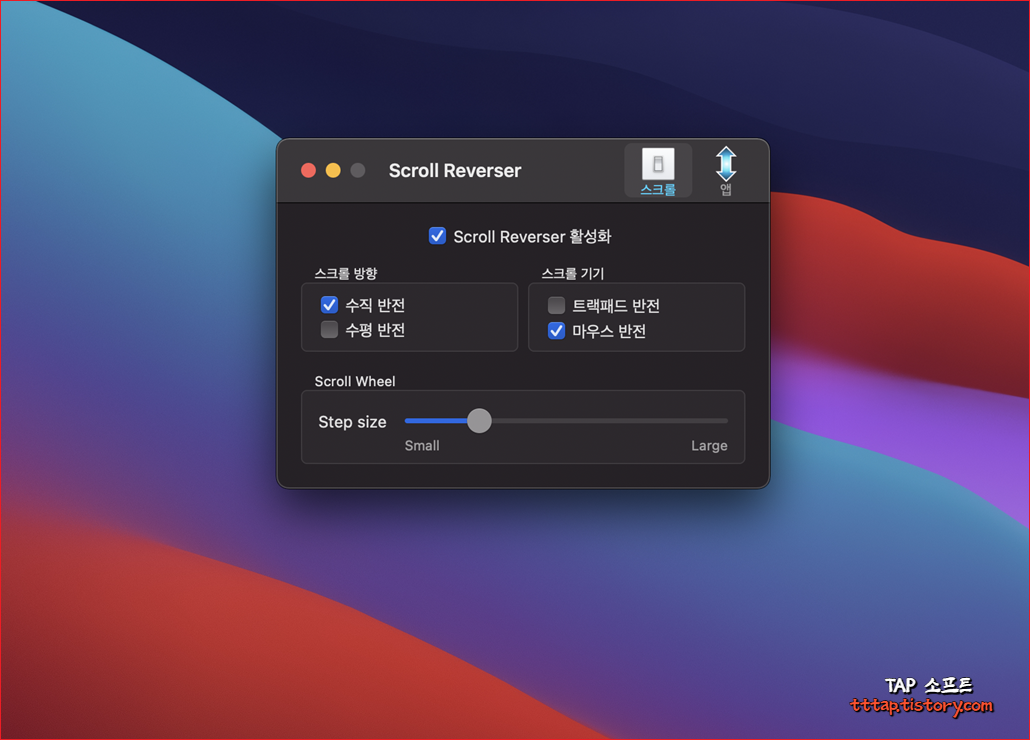 맥북 터치패드 스크롤 방향 및 마우스 휠 반대 프로그램