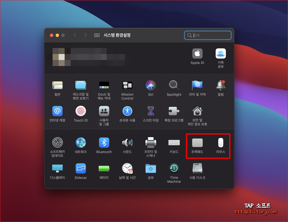 ▼ 1. 시스템 환경설정메뉴에서 마우스를 선택합니다.
