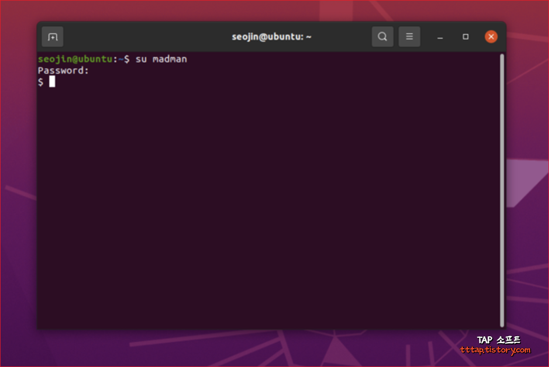 ▼ 만약 직접 해당 컴퓨터에서 로그인 하려면 다음과 같이 su 명령을 사용합니다.