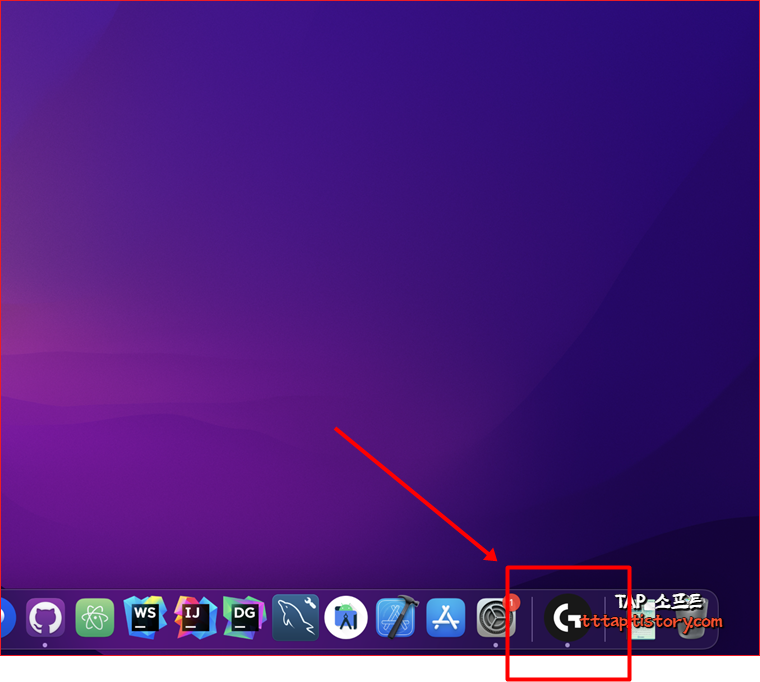 ▼ 1. 모하비 이상의 OS에서는 Dock에 최근 실행했던 프로그램이 표시되는 것을 확인 할 수 있습니다.