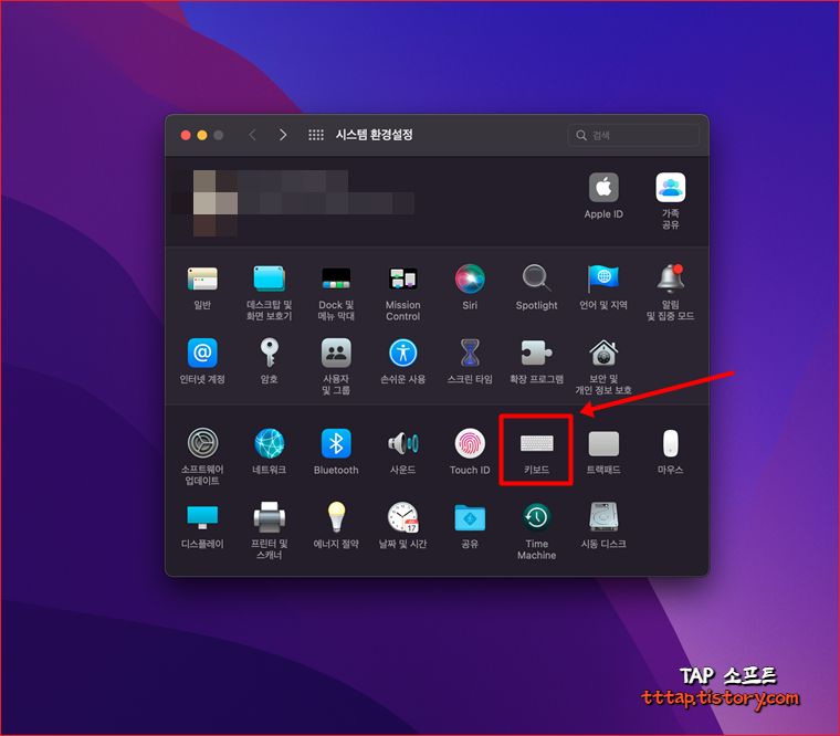 ▼ 1. 맥에 시스템 환경설정 화면을 열고 키보드 메뉴를 선택합니다.
