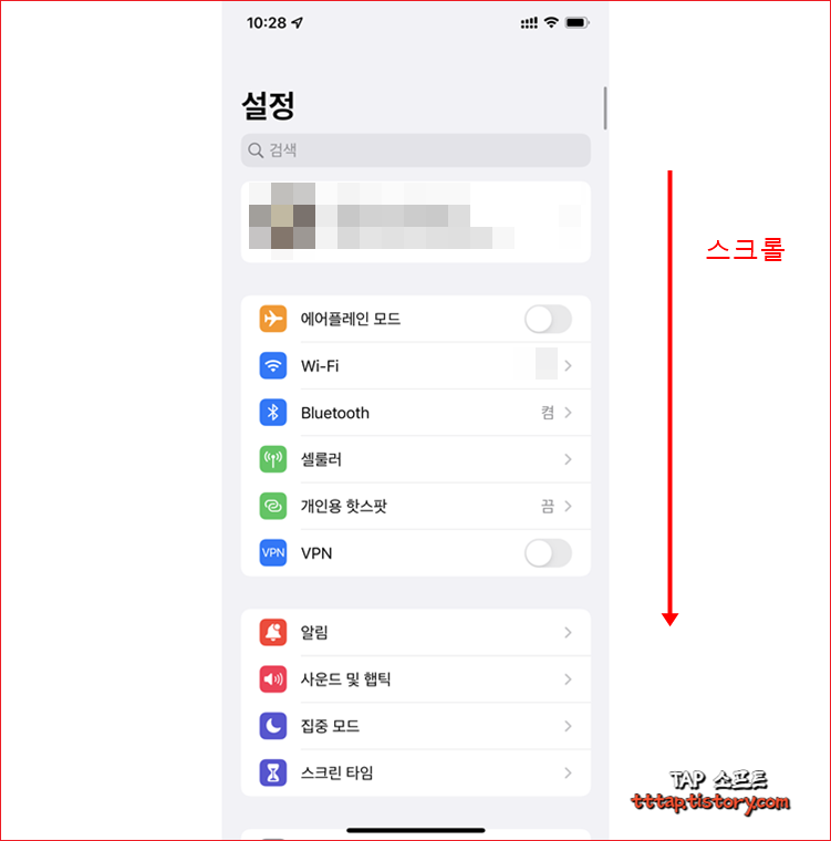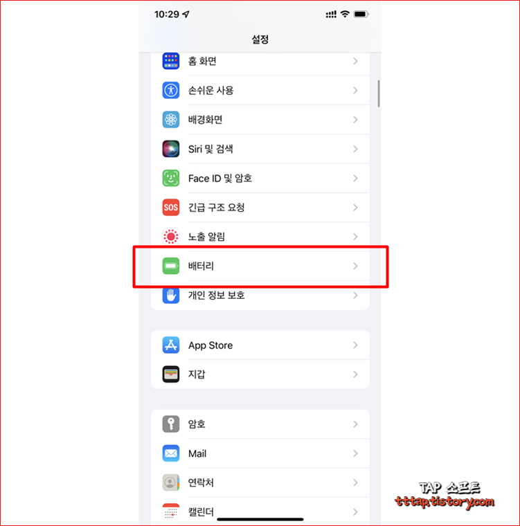 ▼ 1. 아이폰 설정 앱으로 들어갑니다. 그리고 배터리 성능을 확인하기 위해서 아래로 스크롤을 해줍니다.