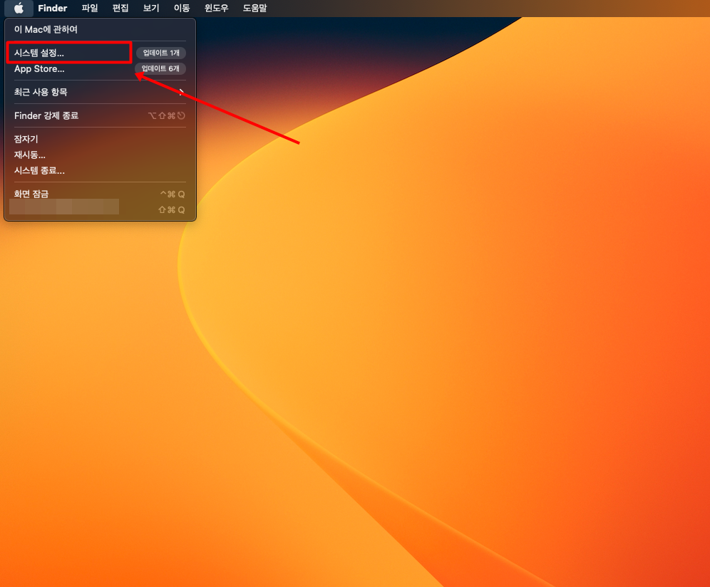 ▼ 1. 우선 좌측 상단의 애플 아이콘을 선택하고 시스템 설정 메뉴를 클릭합니다.