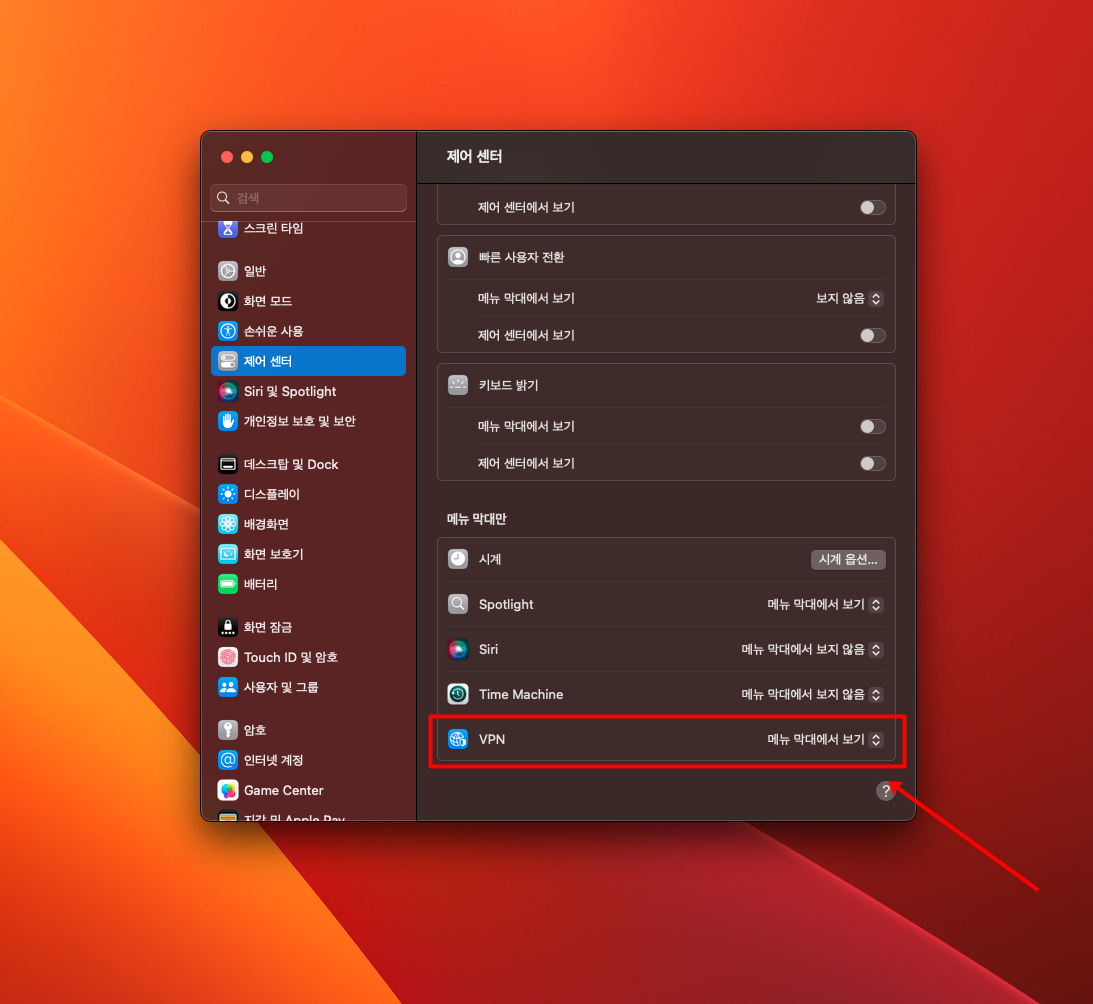 [ macOS ] Ventura 맥북 VPN 메뉴바 아이콘 보이기 노출