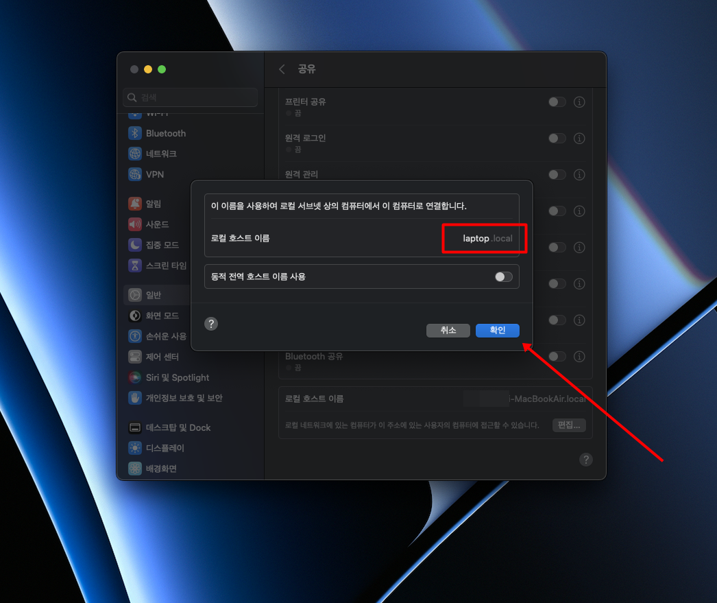 맥 로컬 호스트 이름 변경